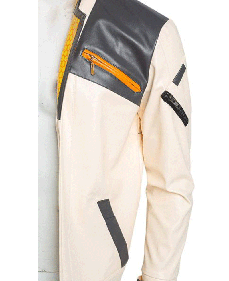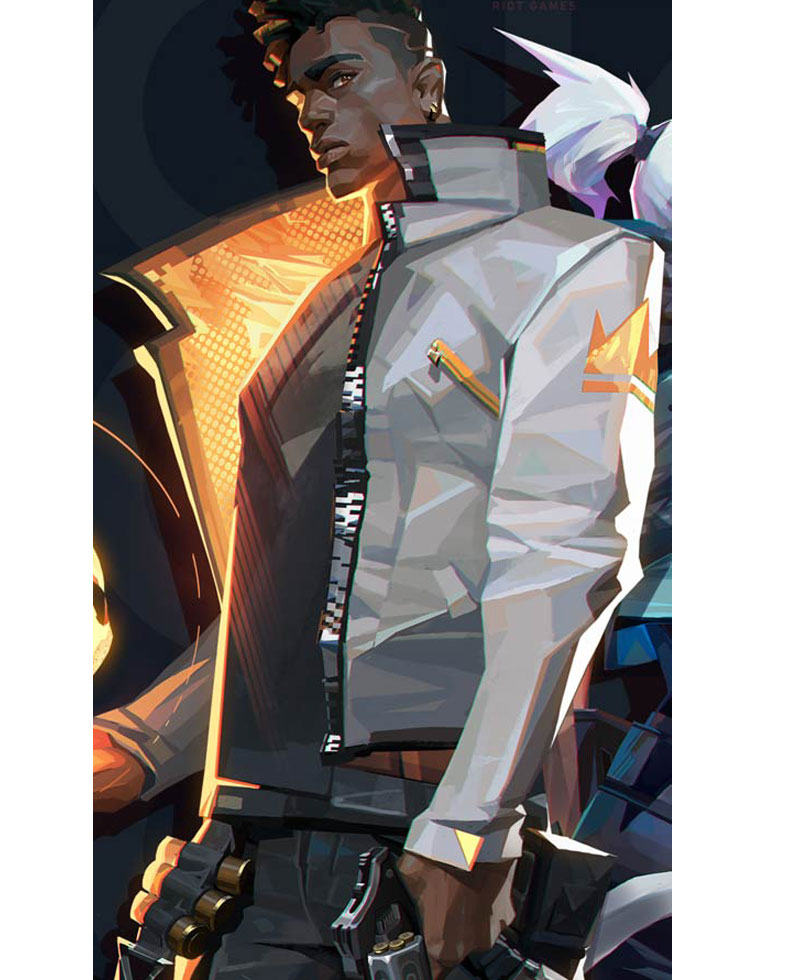 The idea of this white stylish and trendy leather jacket is taken from a famous video game series titled valorant where the game character phoenix wore this jacket. The valorant jacket is manufactured by using high quality faux leather material. It comes in white color. The internal part of this jacket is stitched from premium and soft viscose lining. The valorant Phoenix jacket has a stand up style collar. The apparel comes with front ykk branded zipper closure that fits in perfectly with the style of this jacket. The jacket has open hem style cuffs on full length style sleeves. It comes with two front side waist pockets and two zipper chest pockets along with two inside pockets. There are fire patches on the arms of this jacket.