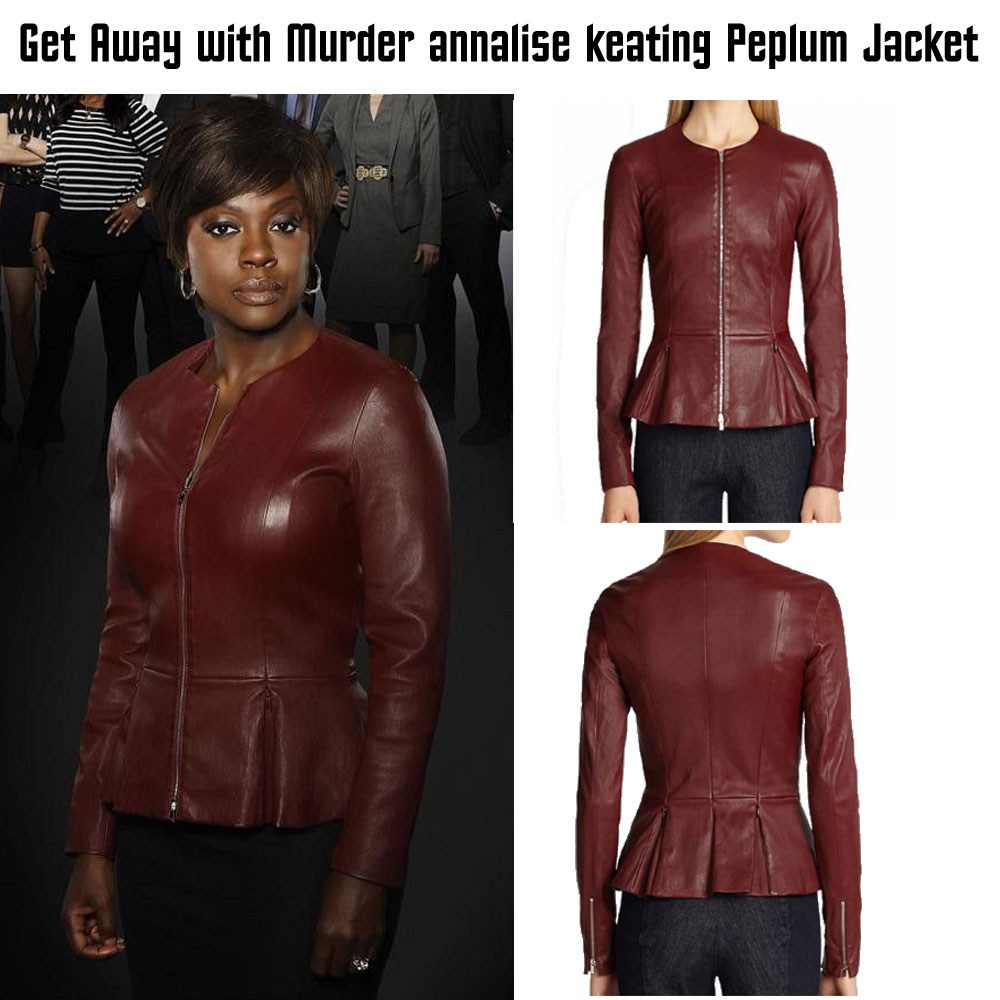 annalise keating leather jacket is manufactured from high and endurable quality of genuine leather material. The material quality is long lasting. This jacket has inner soft viscose lining that keeps this jacket comfortable to carry all day long. This jacket will guard you against cold weather and will no doubt keep you warm and cosy. how to get away with murder viola davis jacket has round neck style collar. This leather jacket worn by viola davis as annalise keating has front ykk branded zippered closure. This leather jacket has full length sleeves with open hem style cuffs. There are two side waist zipper pockets at the front of this leather jacket. The peplum hemline give this leather jacket a smart and appealing look. This jacket comes in maroon color. Order this garb right now without wasting any more time. We assure you that you will love this jacket.