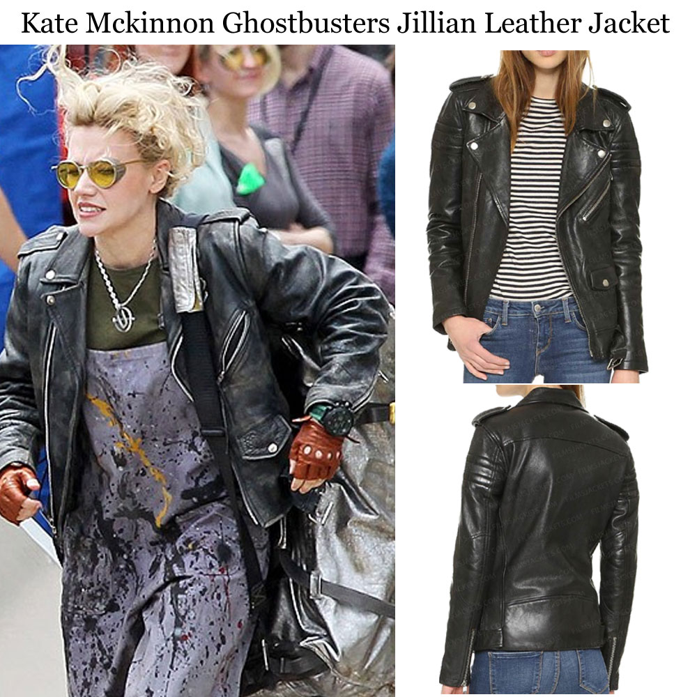 Kate Mckinnon Ghostbusters Jillian Holtzmann Black Leather Jacket