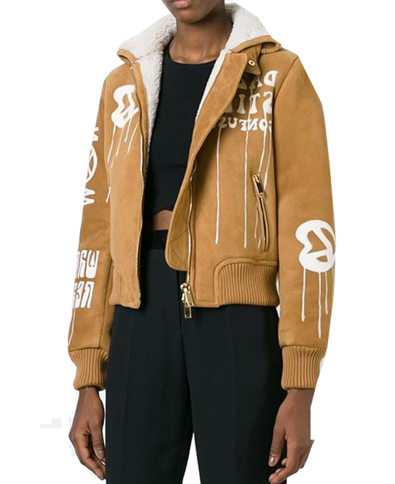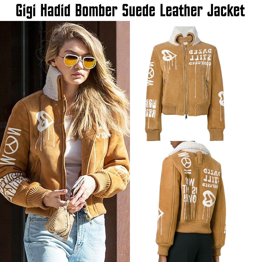 Gigi Hadid’s jacket was worn by the American model herself when she was out for her casual routine and was spotted by the Paparazzi. The way she carried this jacket makes it look classier. The external part of this jacket is manufactured with high quality suede leather material. Camel Suede bomber jacket has an internal lining of soft and comfortable viscose that will keep you warm and comfortable all the time. The jacket has brown intense color. Gigi Hadid jacket has rib knitted cuffs on full length style sleeves. It comes with two front slant waist zipped pockets and two inside pockets where you can secure stuff. The jacket has front ykk branded zipper that fits in perfectly with the style and looks of this apparel. It has shearling turndown collar with throat latch that makes it immensely attractive.
