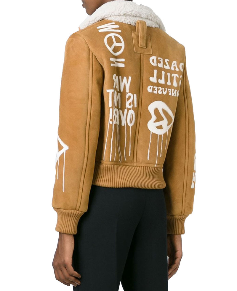 Gigi Hadid Camel Brown Suede Leather Bomber Jacket