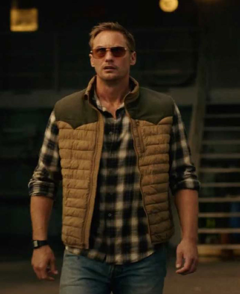 The idea of this classy-looking vest is taken from the famous American science fiction thriller movie called Godzilla vs Kong where the talented and popular actor Alexander Skarsgard wore this vest when he was playing the character of Nathan Lind. The external side of this Nathan Lind vest is fabricated with top-quality polyester material. The vest has a puffer look. The inner side of this vest is covered with a smooth and soft viscose lining that gives you warmth and comfort. Nathan Lind vest has an appealing brown color. There is a ykk branded zipper attached to the front side of this vest for the closure. Alexander Skarsgard Godzilla Vs Kong vest has a stand-up style collar. The vest has two front waist pockets where you can secure stuff.Â