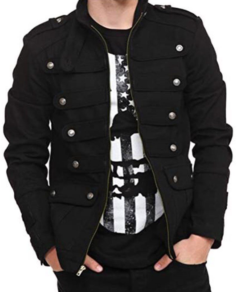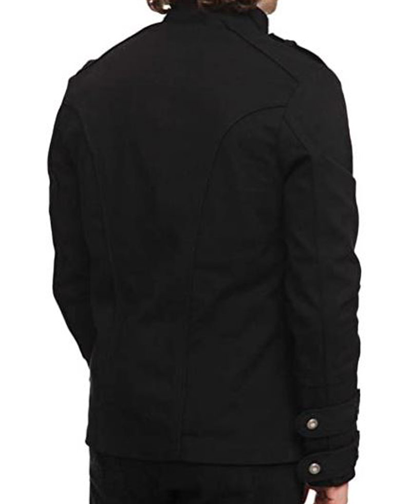 The stylish men’s unique jacket comes in black color. The external side of this jacket is fabricated with premium and top quality cotton fabric. The internal side of this Men’s Unique jacket is stitched with smooth and soft viscose lining that keeps you warm and comfortable all the time. The jacket has a ykk branded zipper attached to the front side of this jacket for closure. The jacket comes with a stand-up style strapped collar as well. Gothic Military jacket comes with shoulder epaulets. The jacket has strapped style cuffs on full-length style sleeves. There are two front flap pockets on this Steampunk jacket where you can secure stuff.