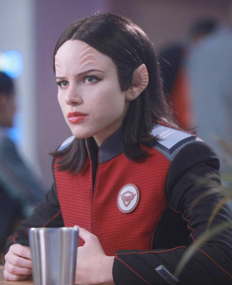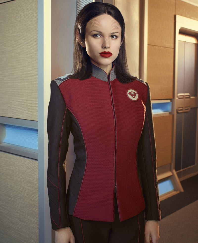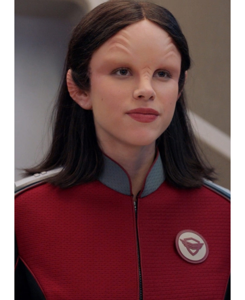 Alara Kitan The Orville TV Series Halston Sage Red and Black Jacket