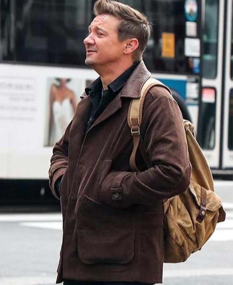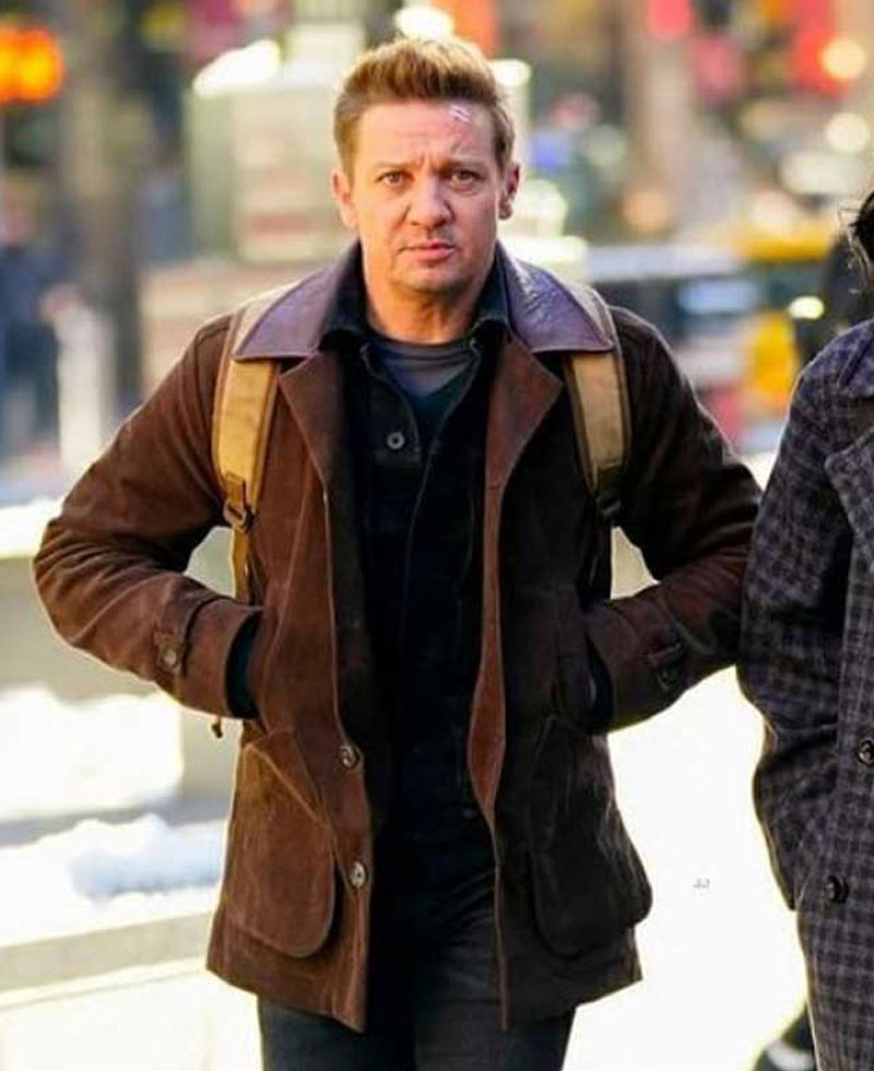 The idea of this jacket is taken from the famous American mini web television drama series called Hawkeye where the famous actor Jeremy Renner wore this stylish jacket when he was depicting the character of Clint Barton. The external side of this jacket is manufactured by using premium quality suede leather material. The jacket comes in a mesmerizing brown color. The Clint Barton jacket has its internal side stitched with soft viscose lining that keeps you warm and comfy. The jacket has buttons attached to its front side for closure. It comes with a shirt style collar. Jeremy Renner Hawkeye jacket has two front waist pockets where you can secure stuff. The jacket has open hem style cuffs on full length style sleeves.