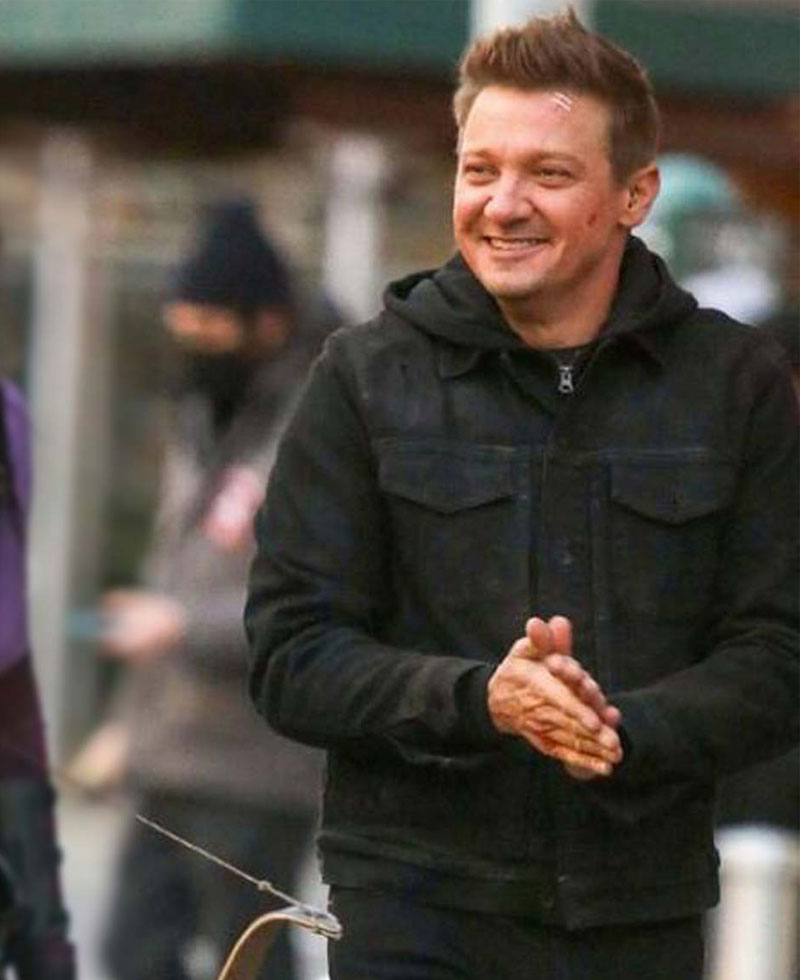 The idea of this jacket is taken from the famous American mini web television drama series called Hawkeye where the famous actor Jeremy Renner wore this jacket when he was portraying the character of Clint Barton. The external side of this jacket is fabricated by using premium quality denim material. The jacket comes in an attractive black color. The Clint Barton black jacket has its internal side covered with soft viscose stitching that keeps you warm and comfy. The jacket has buttons attached to its front side for closure. It comes with a shirt style collar. Hawkeye Jeremy Renner black jacket has two front chest pockets and two front waist pockets where you can secure stuff. The denim jacket has buttoned style cuffs on full length style sleeves.Â