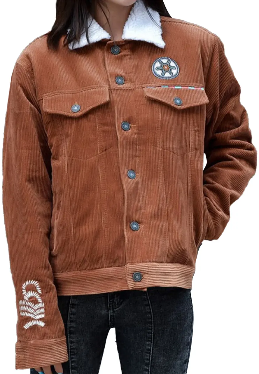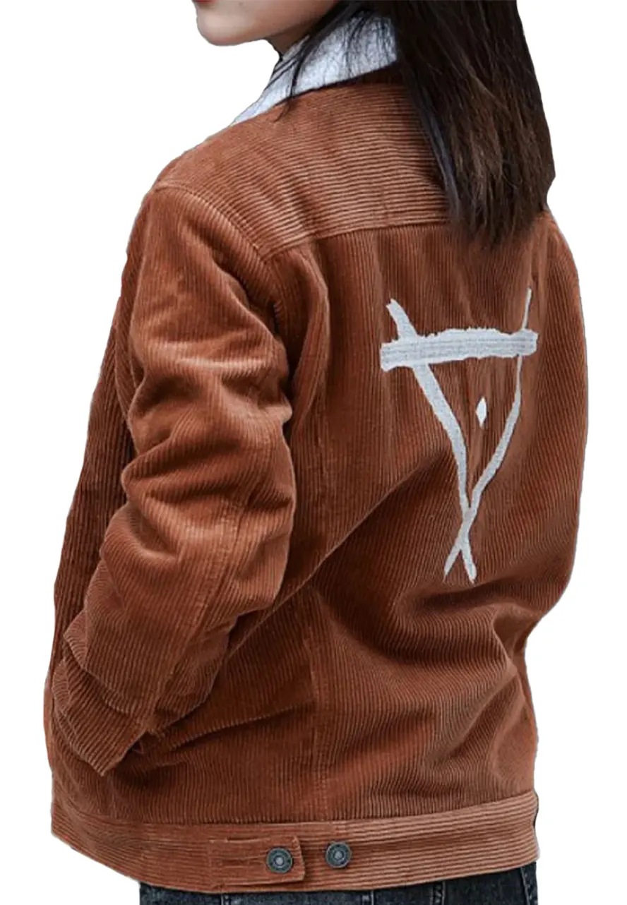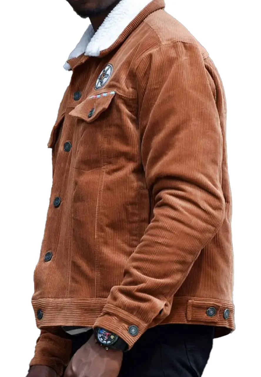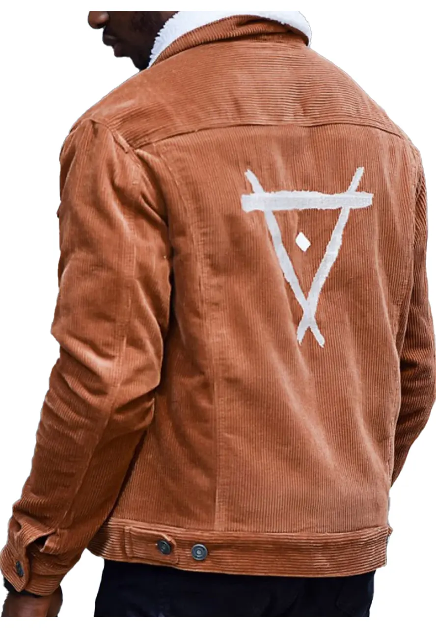 Horizon Zero Dawn Corduroy Brown Shearling Jacket with Fur Collar