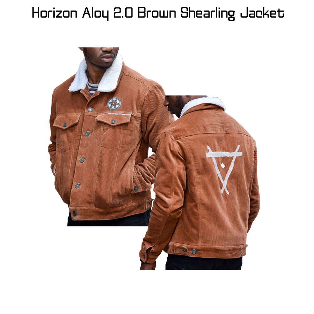 The idea of this shearling style jacket is taken from the famous action role-playing video game called Horizon Zero Dawn where the fictional game character of Aloy 2.0 wore this jacket. The exterior of this jacket is fabricated with premium quality corduroy fabric. The internal side of this Horizon Zero Dawn jacket is stitched with soft and smooth faux shearling lining that guards you against cold weather and keeps you comfortable. The mesmerizing brown color of this jacket looks desirable. There are buttons attached to the front side of this Horizon Zero Dawn jacket for closure. The jacket has a shearling-lined shirt style collar. Horizon Aloy 2.0 jacket has two flap chest pockets and two side waist pockets where you can secure stuff. It has buttoned style cuffs on full-length style sleeves.