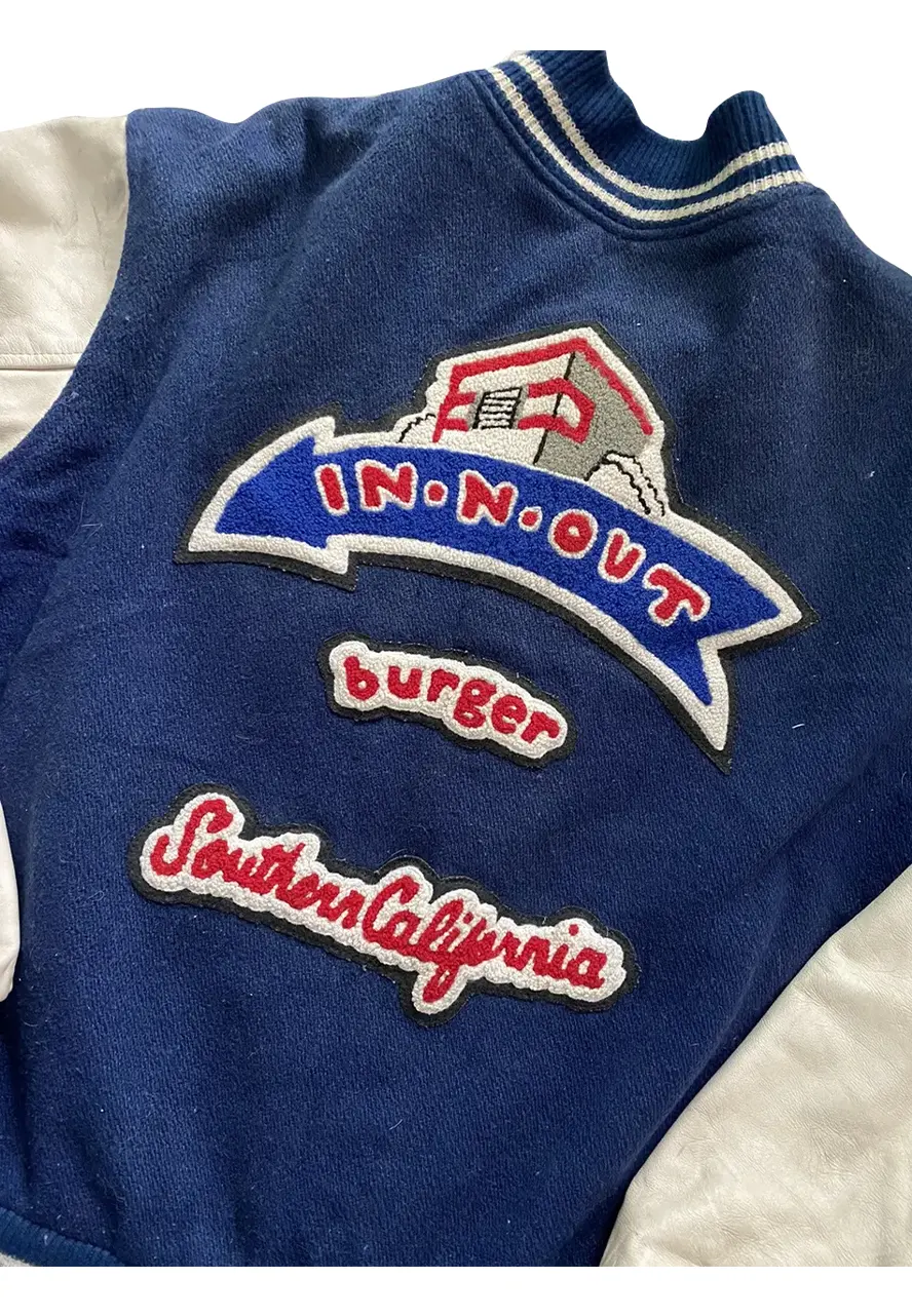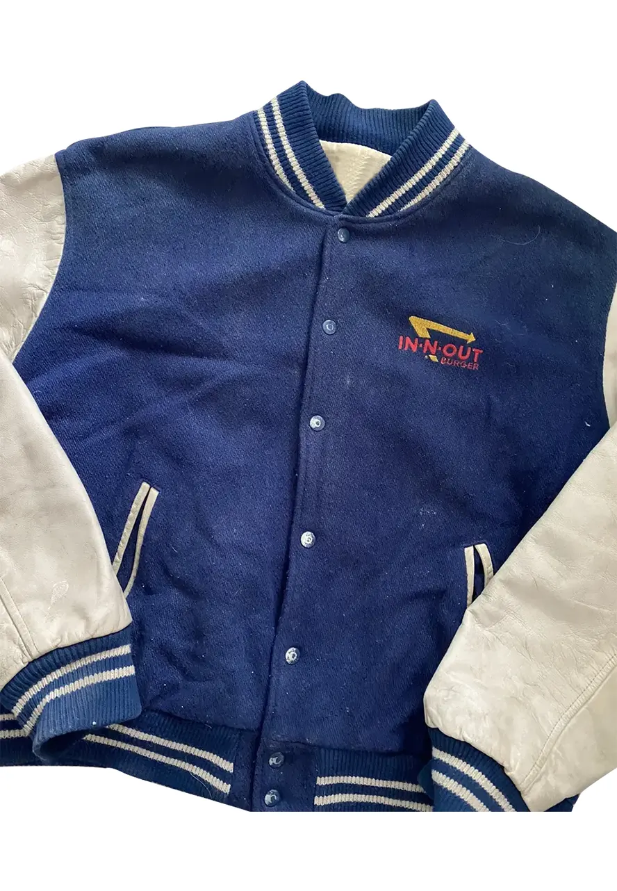 Experience The Sophisticated And Elegant Looks That Will Make You a Cynosure Of All Eyes, You just need To Shop And Wear the In-n-out Burger Varsity Jacket And Create Your Iconic Look. The Dapper Jacket Has Been Fabricated By Premium-quality Wool Fabric, While Its Soft Viscose Inner Makes It Comfortable And Sweat-Free. The Elegant Blue And White Colors Will Enhance The Charm Of Your Personality. The In N Out Burger Jacket Has Been Designed Modishly By Using All Smart Features Like A Rib-knitted Stand-up Collar, Snap Tab Buttoned Closure, Rib-knitted Cuffs And Hemline, And Two Side Waist Pockets To Make It More Functional. The In-N-Out Varsity Jacket Will Unleash Your Inner Style Icon.