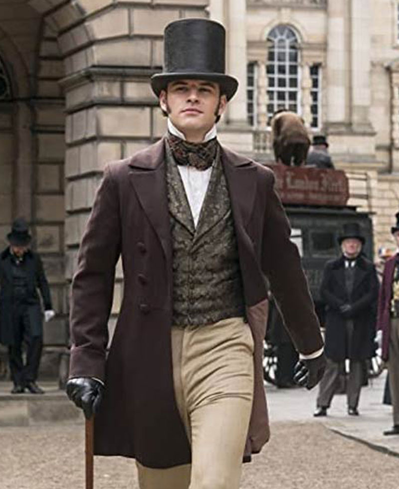 In the historical television drama series titled as Belgravia, the brilliant actor Jack Bardoe wore this appealing vintage coat when he was portraying the character of Charles Pope. The Charles Pope coat is fabricated from high quality of woollen material. It comes in a mesmerizing brown color that gives it an attractive look. The internal side of this coat is stitched with smooth and soft viscose lining that keeps you warm and comfy all the time. The Jack Bardoe Belgravia coat has double-breasted style buttons on its frontal for the closure. The lapel style collar makes the looks of this vintage trench coat more appealing The two front side waist pockets and two inside pockets are designed where you can secure your stuff. The buttoned style cuffs come along with full length style sleeves. This trench coat is the exact replica of the original one.