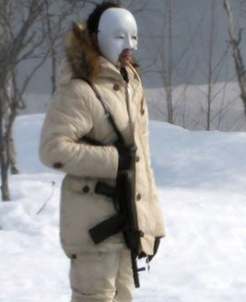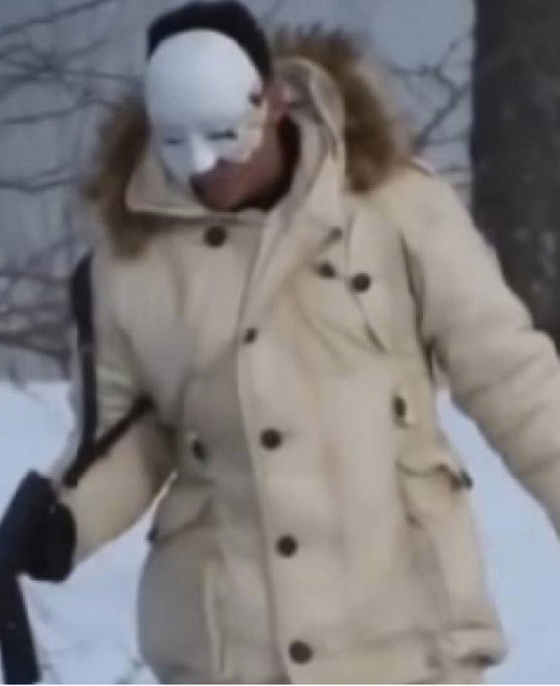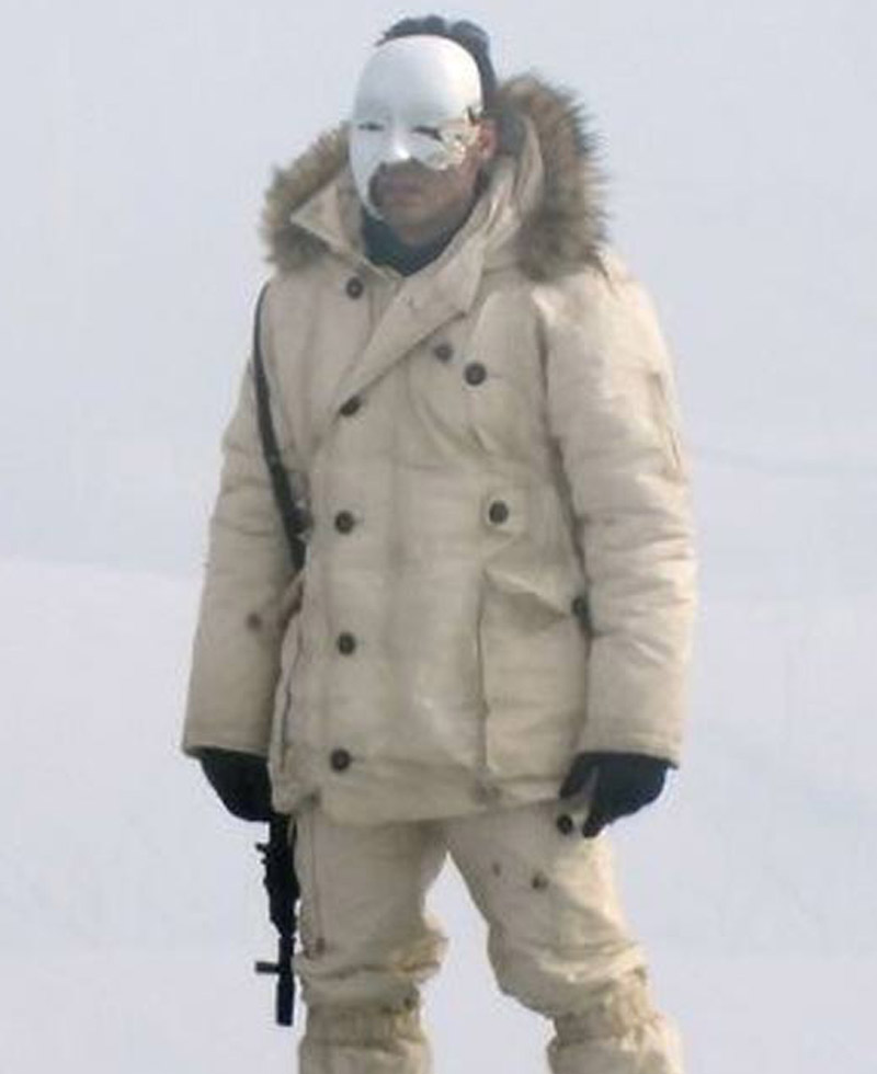 James Bond 25 Movie Villain Gunman Masked Double Breasted White Parka