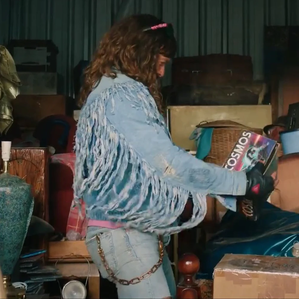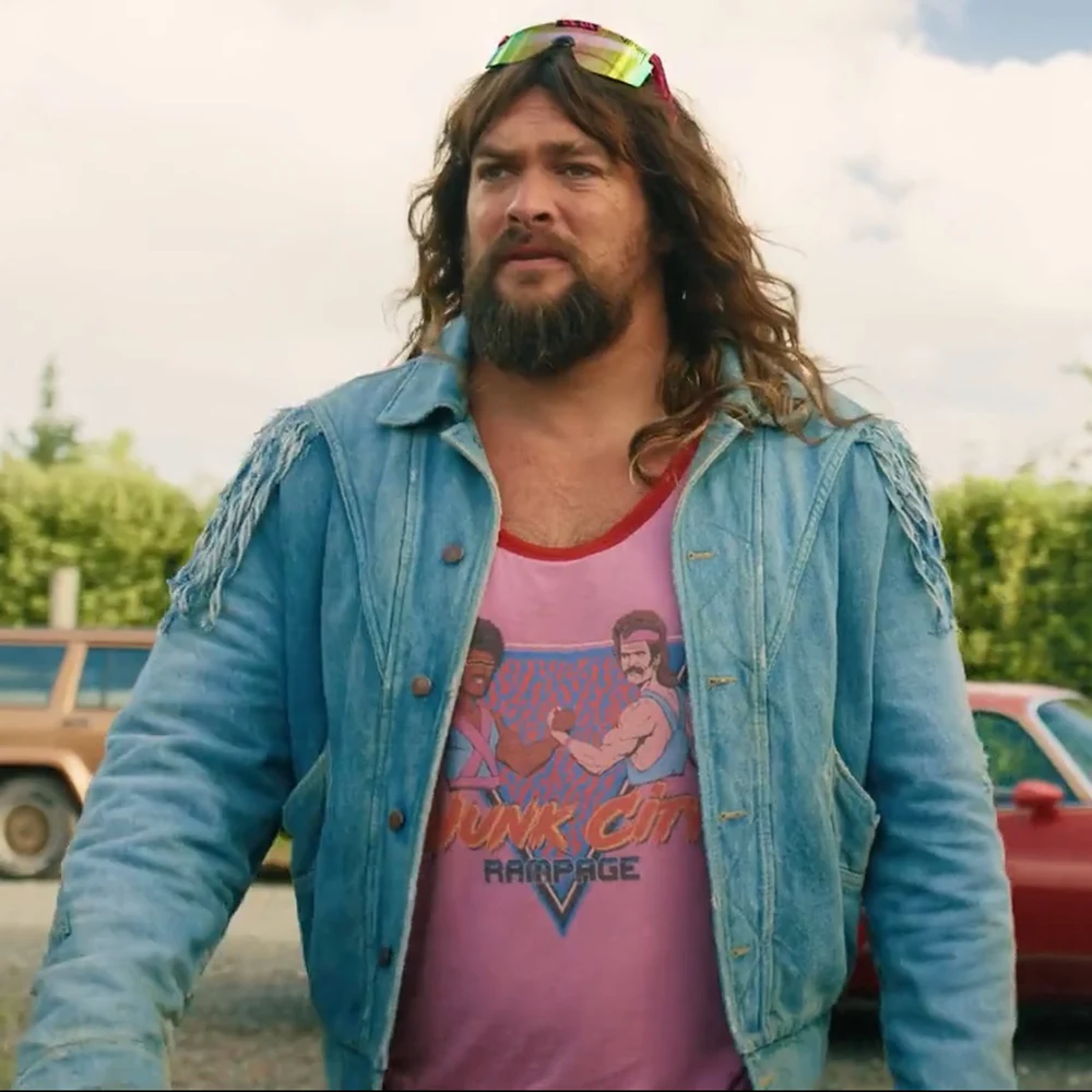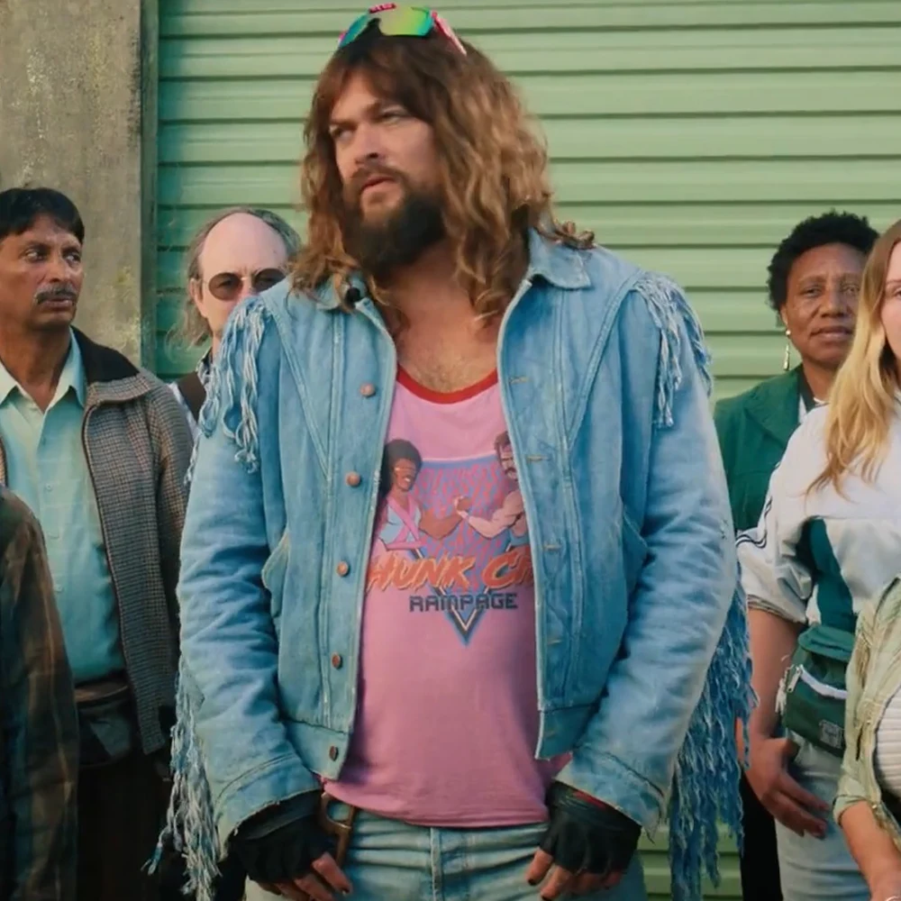 It is not a jacket but it is an ode to fun, color, and fearless individuality. This denim garbage man jacket is an easy-to-wear festival jacket that blends the style of a festival wear and the appearance of a screen wear as inspired by the unusual attire of Jason Momoa in The Minecraft Movie.