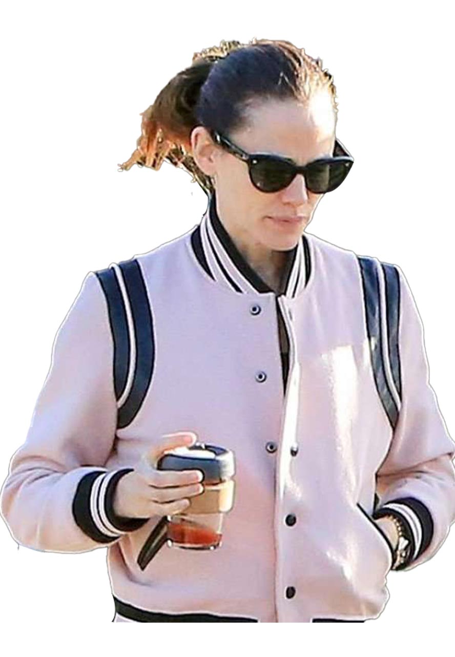 The Jennifer Garner Pink Varsity Jacket Will Showcase Your Great Taste for Selecting Fashion-forward Layering That Will Not Only Give You Timeless Charm but Also Make Your Appearance Captivating. The Jennifer Garner Jacket Has Been Fabricated in Premium-quality Wool to Make It Warm and Ageless and Its Soft Viscose Inner Makes It Sweat-free. The Charming Pink Color Will Give You a Doll-like Look. The Jennifer Garner Pink Varsity Jacket Has Been Designed by Using Features Like a Rib-knitted Stand-up Collar, Snap Tab Buttoned Closure, and Two Side Waist and Inner Pockets. The Pink Varsity Jacket Will Make Your Any Outdoor Activity Enjoyable and Comfortable.