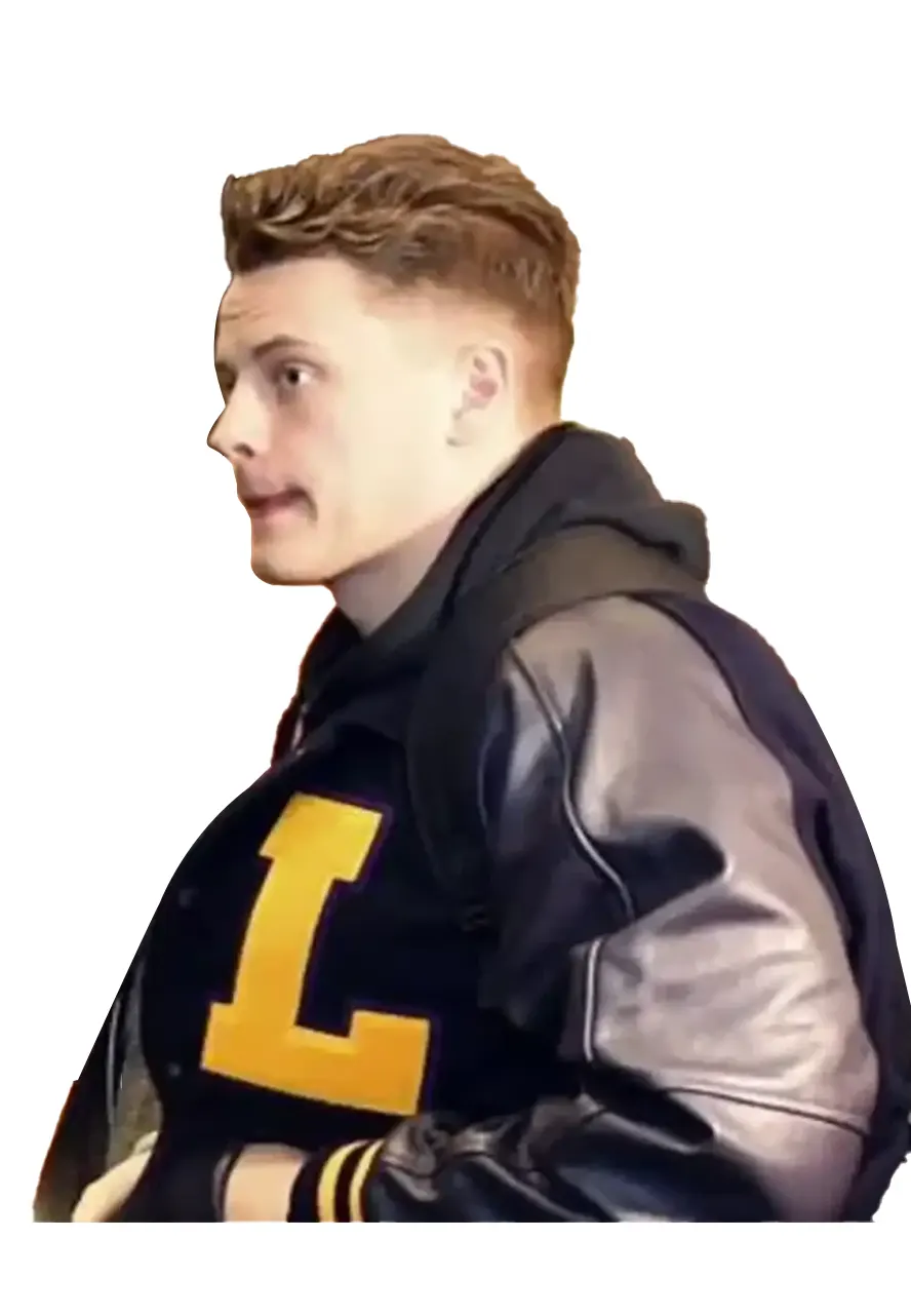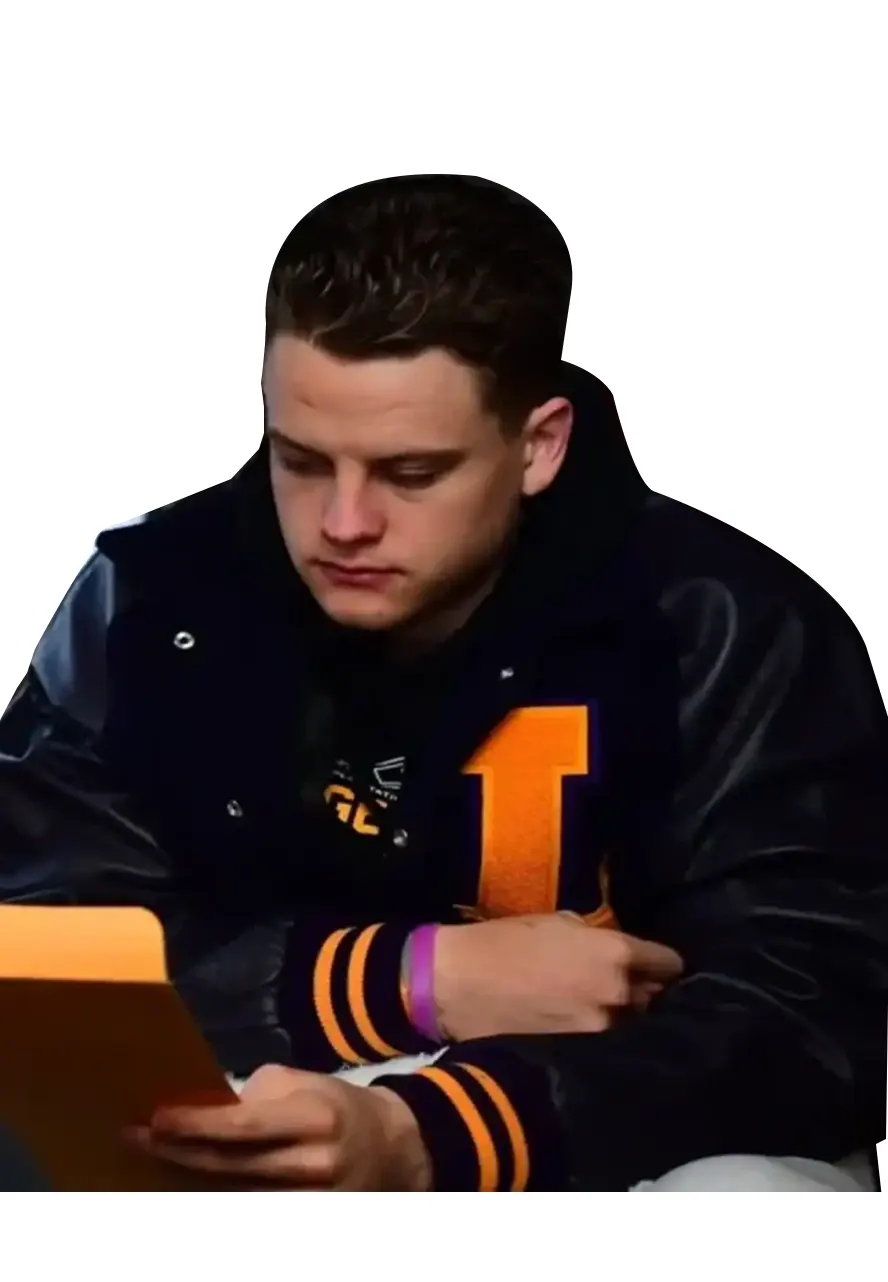 If You Want to Wear an Outfit That Will Accentuate Your Physique and Also Leave With a Stunning Appearance, Then You Must Shop and Wear the Joe Burrow Letterman Jacket. The Premium-quality Wool and Leather Fabrication Makes It Warm and Ageless, While Its Soft Viscose Inner Makes It Comfortable and Sweat-free. The Strong Black Color Will Enhance Your Smartness. The  Joe Burrow Jacket Has Been Designed by Using Features Like a Rib-knitted Stand-up Collar, Snap Tab Buttoned Closure, Rib-knitted Cuffs and Hemline, and Side Waist Pockets to Increase Its Functionality. The Joe Burrow Varsity Jacket is Timeless and Trendy to Give You a Highly Fashioned Look.