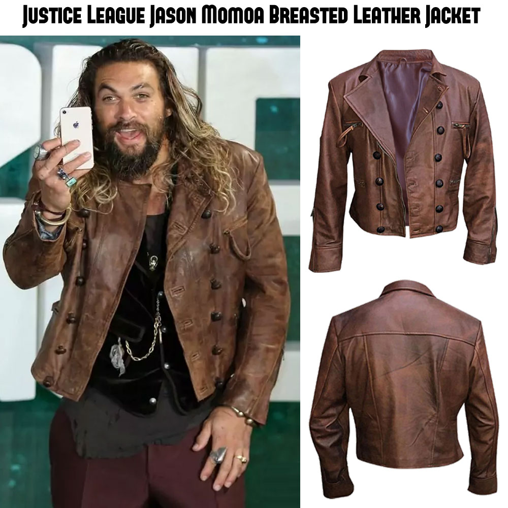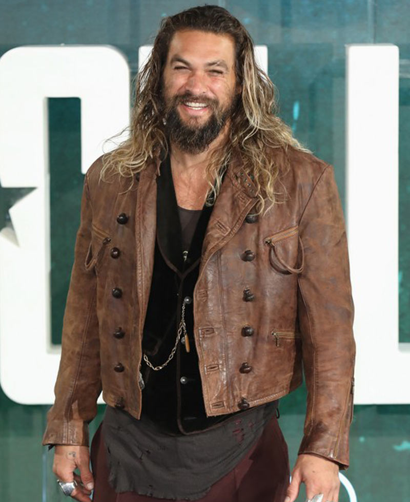Justice League Cast Gets Silly Jason Momoa Double Breasted Leather Jacket