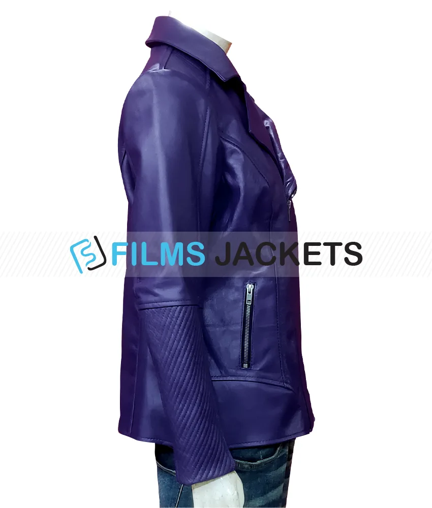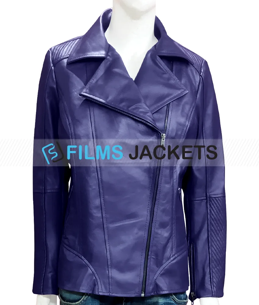 Dazzling Kelly Maxwell Purple Leather Jacket has unlimited facets of making your personality attractive. High quality real leather is used for the making of exterior part. The designing is just same as the attire that has been worn by superstar Dana Delorenzo. She depicted the leading role in the American comedy and horror television series named as “Ash Vs Evil Dead”. Asymmetrical style of Ash Vs Evil Dead Leather Jacket has made it winning. The purple shade of apparel is appealing and makes you enticing. Lapel collar style is given in the attire. The front zipper closure facilitates you in easy wearing. Both sleeves are long in measurement and fitting. You can dress it in formal or informal occasions because it suits for everywhere. Zipper cuffs of the Kelly Maxwell Leather Jacket forms slimmer look of the wearer. Quilted linings are present on both shoulders.