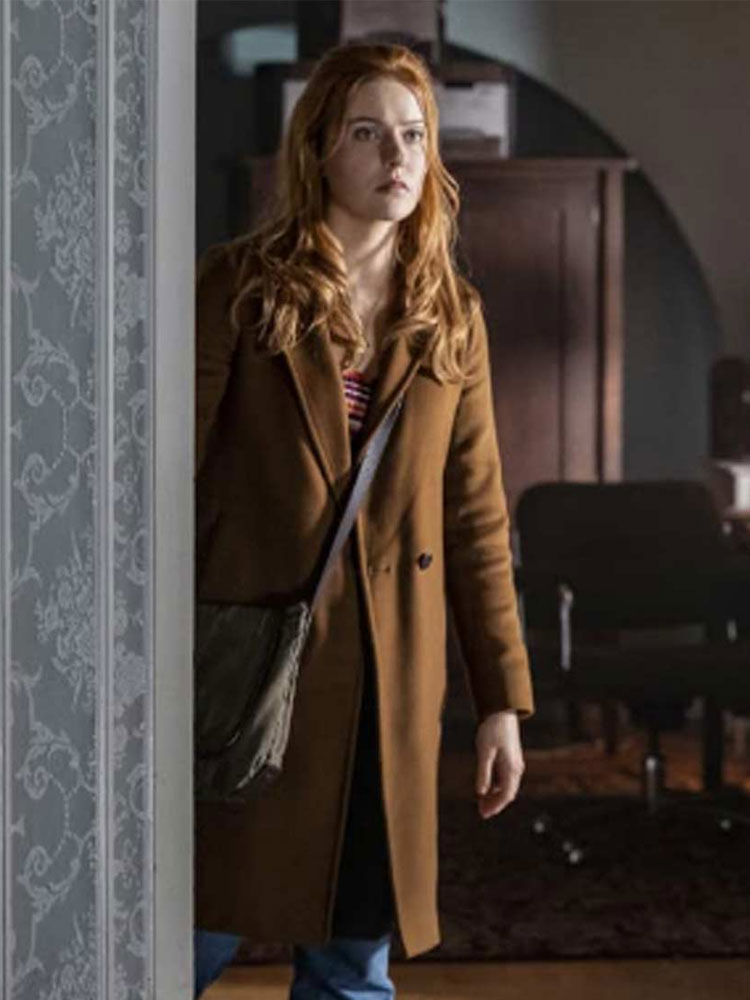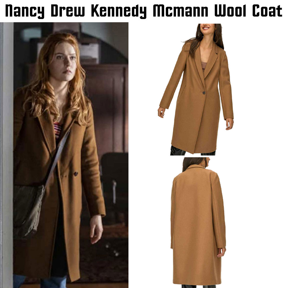 The Talented and Gorgeous American Actress Kennedy Mcmann Wore This Stylish Classic Coat in the American Popular Supernatural and Mystery Web Television Drama Series Called Nancy Drew Where the Gorgeous Actress Portrayed the Character of Nancy Drew. Top-quality Wool Material is Used for Making the External Side of This Coat. On the Internal Side of This Nancy Drew Coat is a Lining of Smooth and Soft Viscose Attached to Give You Warmth and Comfort. The Mesmerizing Brown Color Looks So Appealing. There is a Single Button Attached to the Front Side of This Nancy Drew Coat for the Closure. The Coat Has Open Hem Style Cuffs on Full Length Style Sleeves. It Comes With Two Front Waist Pockets Where You Can Secure Stuff. The Nancy Drew Kennedy Mcmann Coat Has a Lapel Style Collar. This Coat is Long in Length. It is Perfect for the Outdoors and Parties.