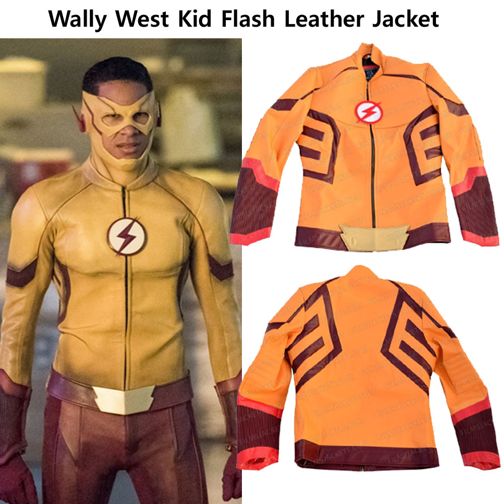 The Kid Flash Jacket is the best dress which makes you astounding and alluring. It is the best replica of the outfit that has shown in the current year tv series named as “Flash Season 3”. It was released in 2016 and got extraordinary fame. The Kid Flash Jacket is worn by superstar Wally West in the same movie. The outer shell of the outerwear is manufactured from the faux or genuine leather. The impressive combination of red and yellow color has made Kid Flash Leather Jacket unique. The Kid Flash logo is present at the front side of the jacket. The collarless style has given enchanting appearance to the dress. The red stripes are added on the Kid Flash Leather Jacket to make it more appealing. The front branded YKK zipper closure is given for easy wearing. Just buy and decorate your personality.