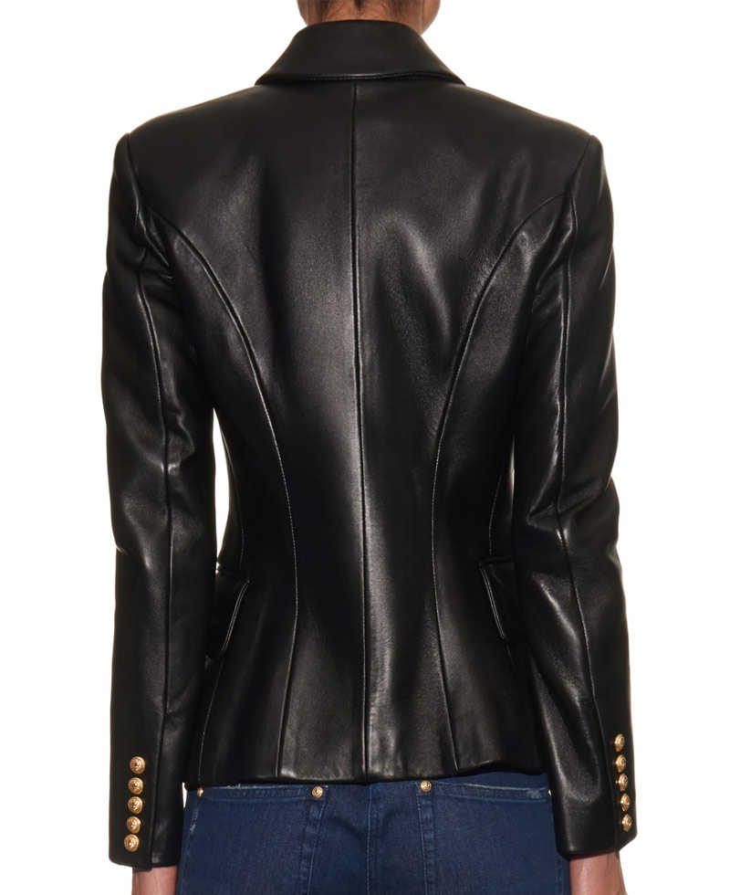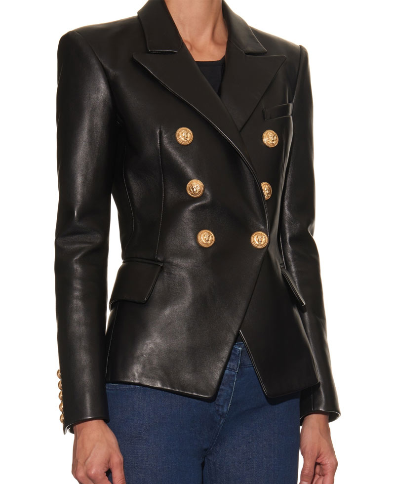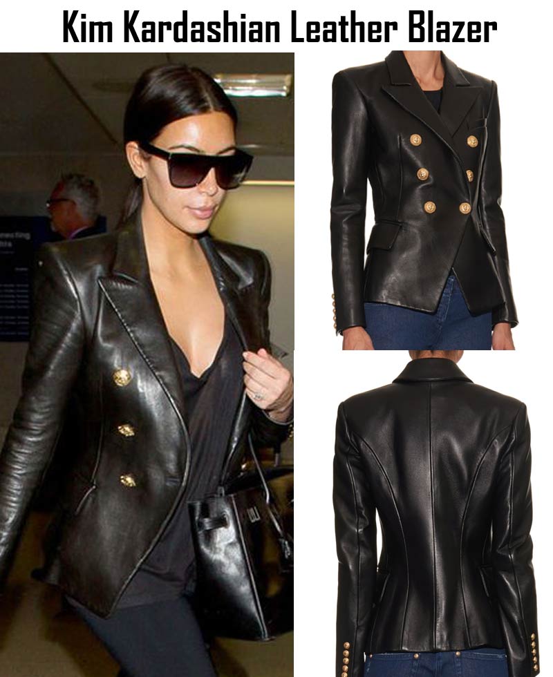 Kim Kardashian Double Breasted Black Leather Blazer Style Jacket