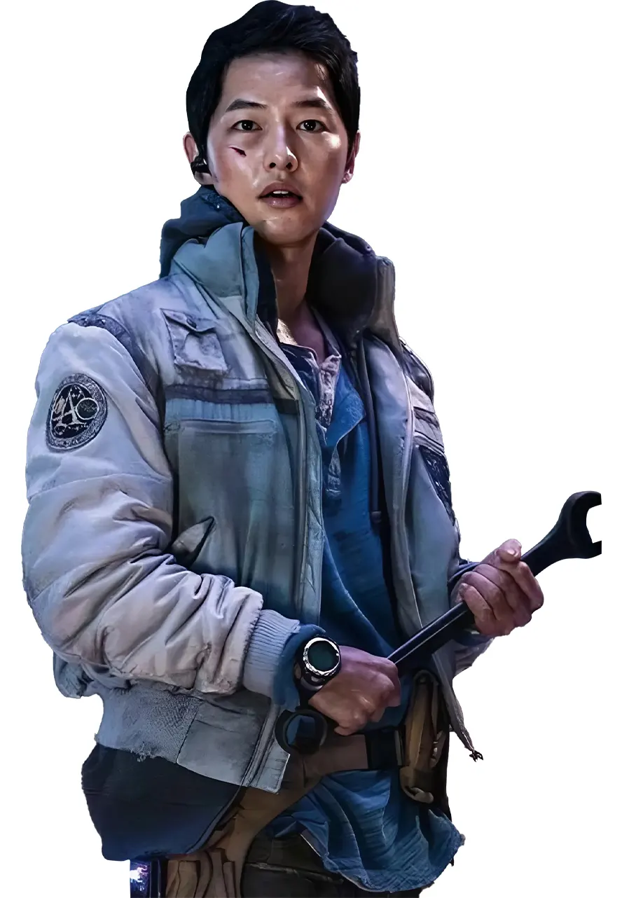 The idea of this jacket is taken from the popular Netflix south Korean movie called the Space Sweepers where the talented actor Song Joong Ki wore this jacket when he was playing the character of Kim Tae-ho. The outer side of this jacket is fabricated with top-quality polyester material. The inner side of this jacket is stitched with a smooth and soft viscose lining that keeps you warm and guards you against cold weather. The jacket comes in an attractive grey color. There is a ykk branded zipper attached to the front side of this jacket for the closure. Song Joong Ki Space Sweepers jacket comes with a stand-up style collar. The jacket has front pockets along with inner pockets to secure stuff. Kim Tae-ho jacket has rib-knitted style cuffs on full length style sleeves. The jacket has a rib-knitted hemline as well. This jacket has Embroidered Logos on Chest and Sleeve.
