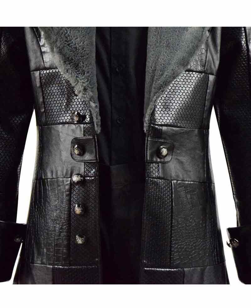 kingdom hearts iii sora coat is manufactured from high and durable quality of faux leather. This coat will shield you against cold weather and will make you feel warm. This coat will give you an eye catching and trendy look. The inner soft viscose lining makes this apparel very comfortable to wear. sora trench coat has full length sleeves. This coat has a fur lapel style collar. This coat has stylish buttons at front. This coat has front open style closure that fits in perfectly with the style of this leather apparel. This coat is now available here in an appealing black color. Order this coat by just following the given steps. Hurry up and do not waste any further time.