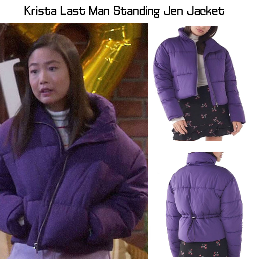 In the American Television Series Called the Last Man Standing, the Gorgeous Actress Krista Marie Yu Wore This Jacket When She Was Depicting the Character of Jen. Premium Quality Polyester Blend Material is Used for the External Fabrication of This Jacket. The Jacket Comes in an Appealing and Attractive Purple Color. Jen Purple Puffer Jacket Has an Internal Lining of Smooth and Soft Viscose Attached That Guards You Against Cold Weather and Keeps You Warm and Comfy. The Jacket Comes With a Ykk Branded Zipper Attached to Its Front Side for the Closure. Jen Purple Puffer Jacket Has a Stand-up Style Collar. The Jacket Comes With Open Hem Style Cuffs on Full Length Style Sleeves. There Are Two Waist Pockets on the Front Side of This Stylish the Last Man Standing Krista Marie Yu Puffer Jacket Where You Can Secure Stuff.
