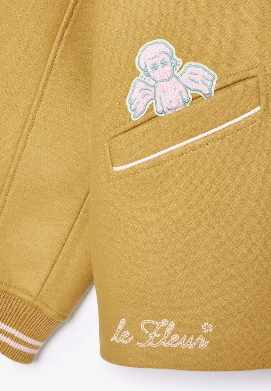 The Lefleur Snap Varsity Jacket Will Radiate Warmth and Sophistication, You Can Feel Both Cozy and Comfortable and Its Texture Will Wrap You With Elegance. The Full Snap lefleur varsity jacket Has Been Fabricated by Premium-quality Wool to Make It Warm and Ageless, While Its Soft Viacose Inner Makes It Comfortable and Moisture-free. The Elegant Yellow Color Will Looks So Nice on You. The Lefleur Varsity Jacket Has Been Tailored With Shirt-style Collar, Snap Tab Buttoned Closure, Rib-knitted Cuffs and Hemline, and Two Side Waist and Inner Pockets to Make It More Functional. The Yellow Snap Varsity Jacket Has a Perfect Balance of Elegance and Comfort, and Give You Such Look That Will Make Everyone Your Style Follower.