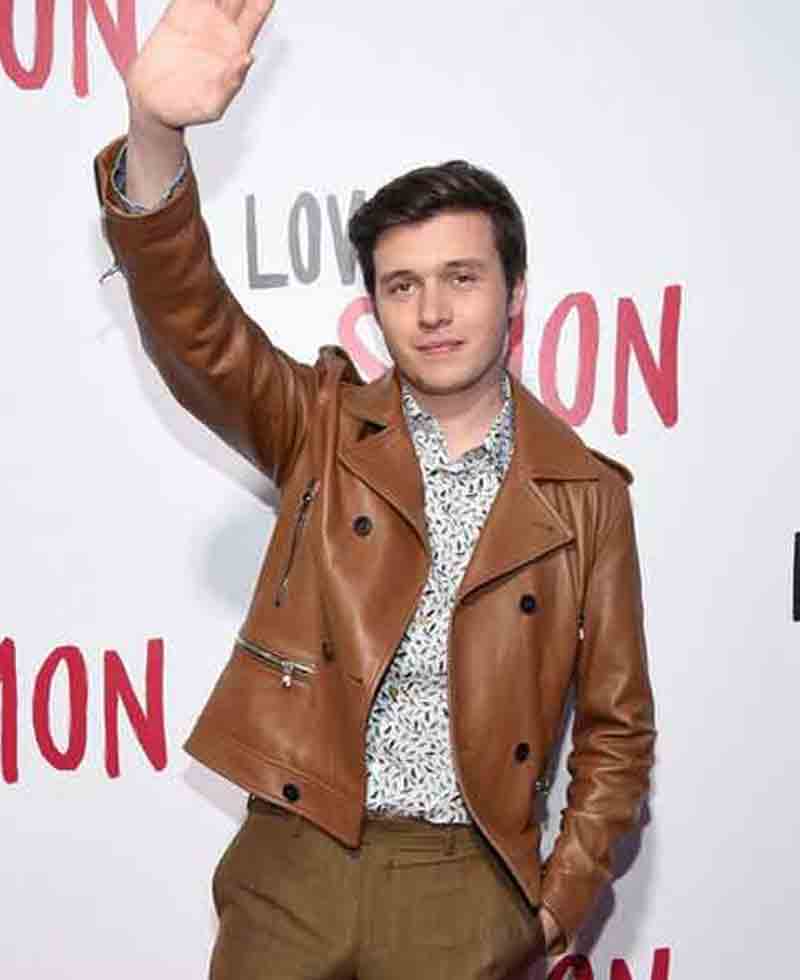 Love Simon Nick Robinson Double Breasted Brown Leather Jacket