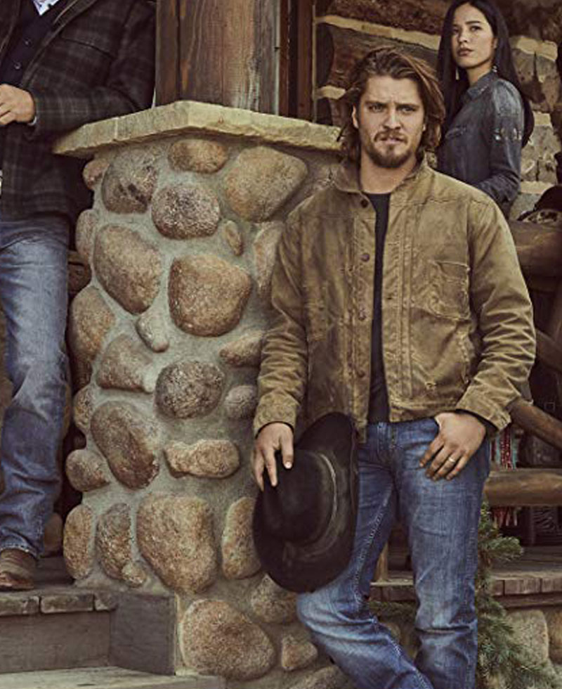 Yellowstone Luke grimes Leather jacket has a shirt style simple collar and front buttoned style conclusion. The buttoned cuffs on long length sleeves compliment the jacket. There are two front waist pockets and two chest pockets for keeping things in them secure. This jacket gives your personality an elegant and sober look.