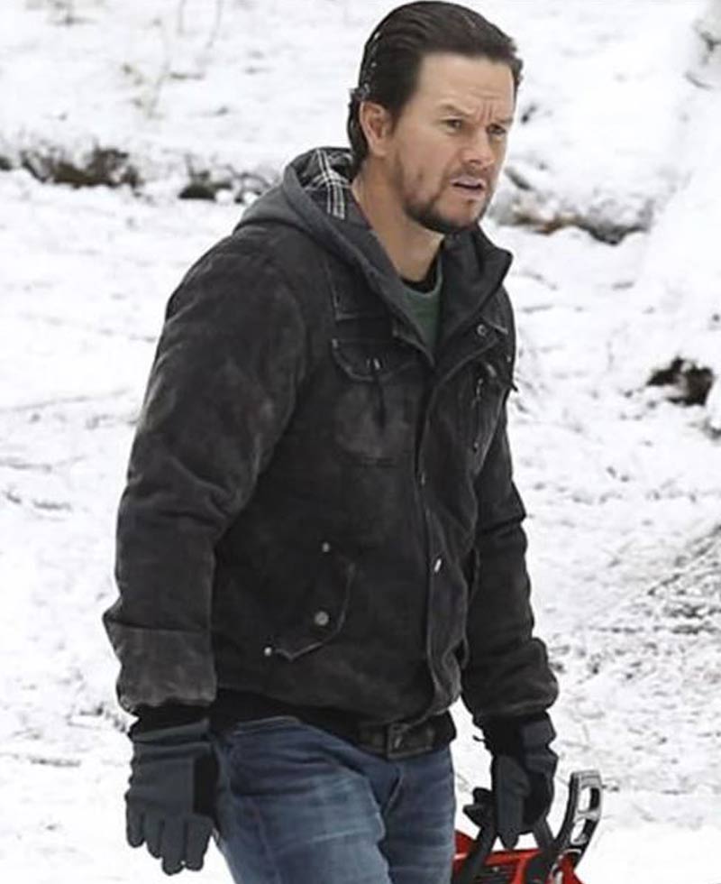 Daddy’s Home 2 Movie Dusty Black Suede Leather Jacket with Hoodie