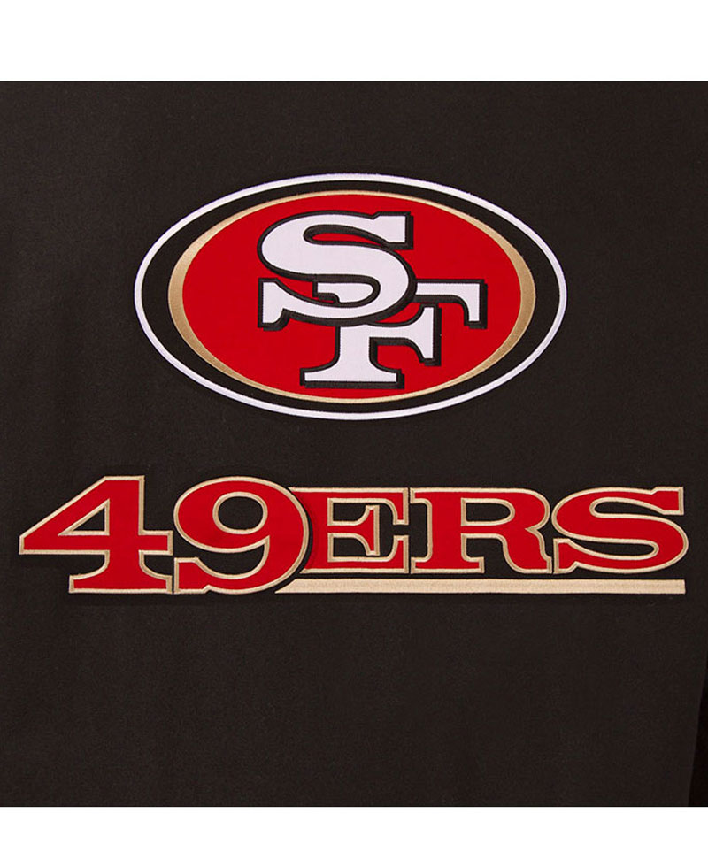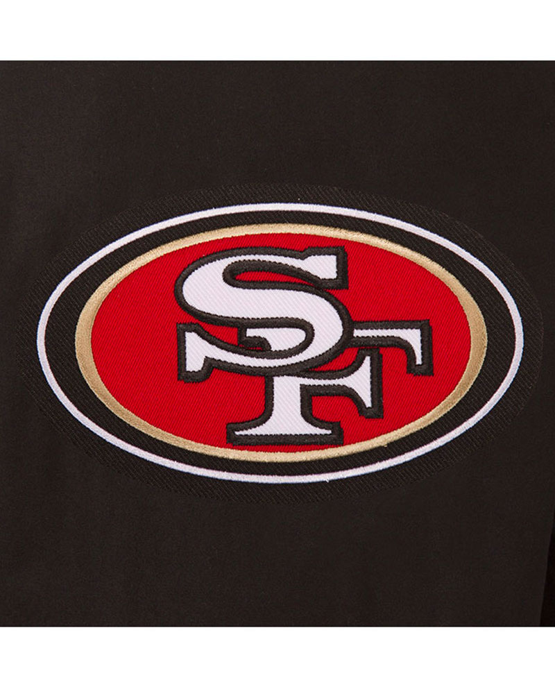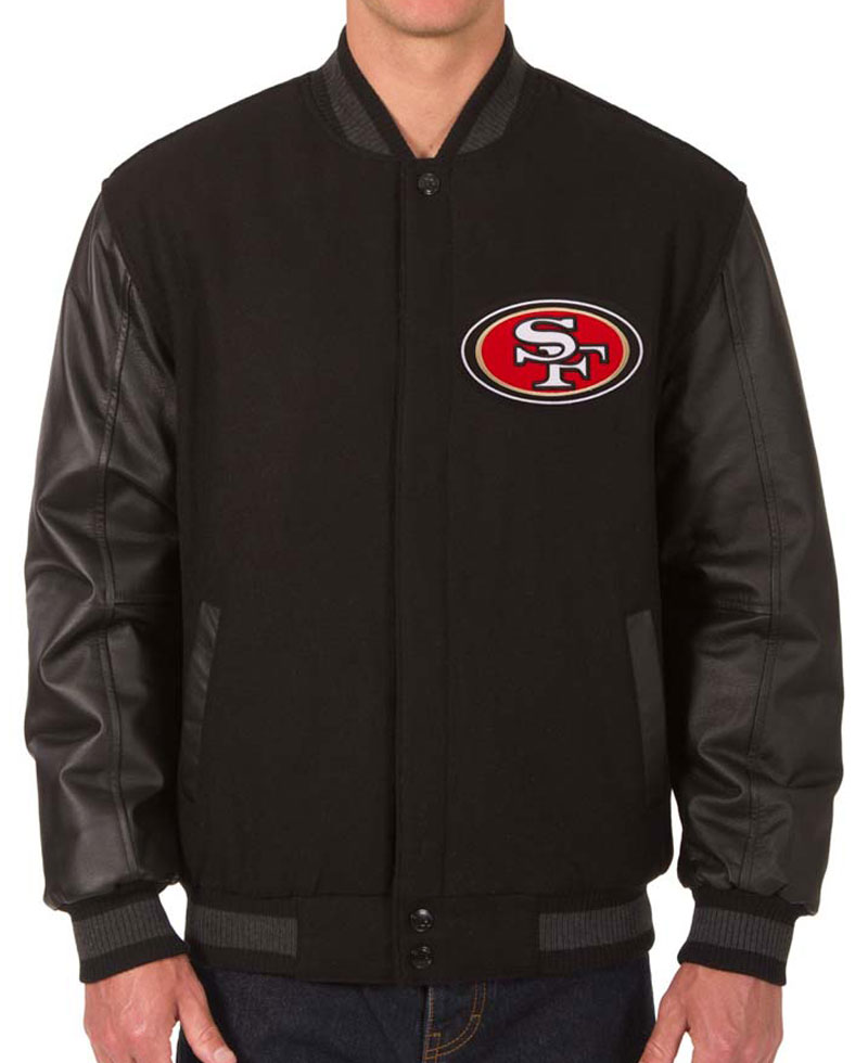49ers jacket men come in an appealing brown color. It has the 49ers and Sf logos on its back which makes the garb attractive. The external side of this jacket is fabricated with wool material of premium quality. On the internal side of this jacket is a lining of smooth and soft viscose attached that keeps you warm and comfortable all the time. The jacket used top-quality cowhide leather material for the manufacturing of the sleeves. The sleeves come with rib-knitted style cuffs. The reversible 49ers jacket has a ykk branded zipper attached to its front side for the closure. The rib-knitted style collar looks so classy on this varsity bomber-style jacket. The jacket also has two front waist pockets where you can secure stuff. It has a rib-knitted hemline as well.