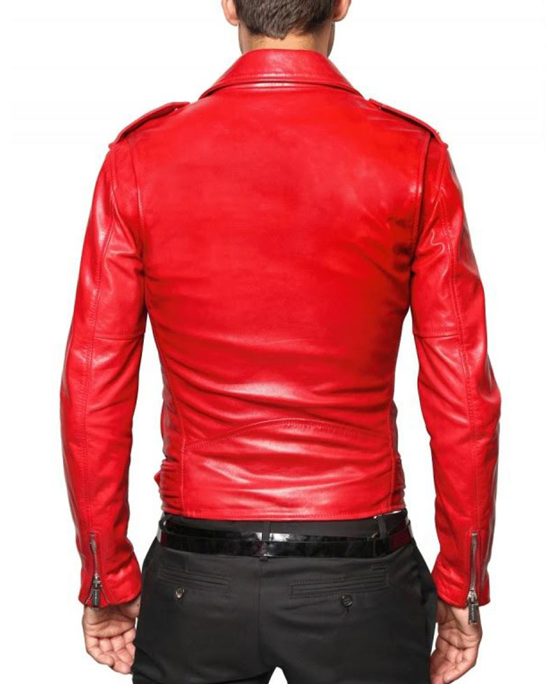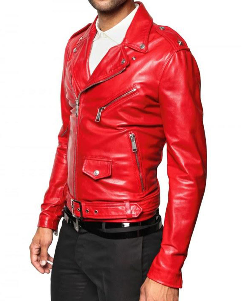 There are many men who likes to stay fashion forward and experiment with their looks. Their choice of clothing depends on their change of moods. For such men customizable pieces are generated so that they can showcase their personalities. Red leather biker jacket is an example of such fabulous pieces. The vibrant fiery red of men’s red leather jacket amaze the audience. Red leather biker jacket has an asymmetrical zipper closure and lapel collar bring the essential biker feels. Zipper pocket on chest, waist and flapped pocket on waist adds style to the jacket but also helps in the serviceability of red motorcycle jacket. Men’s red leather biker jacket has full sleeves with snap tab zipper cuffs and unique belt with buckle adjustment is also present to fit the size of wearer and to make them look amazing.