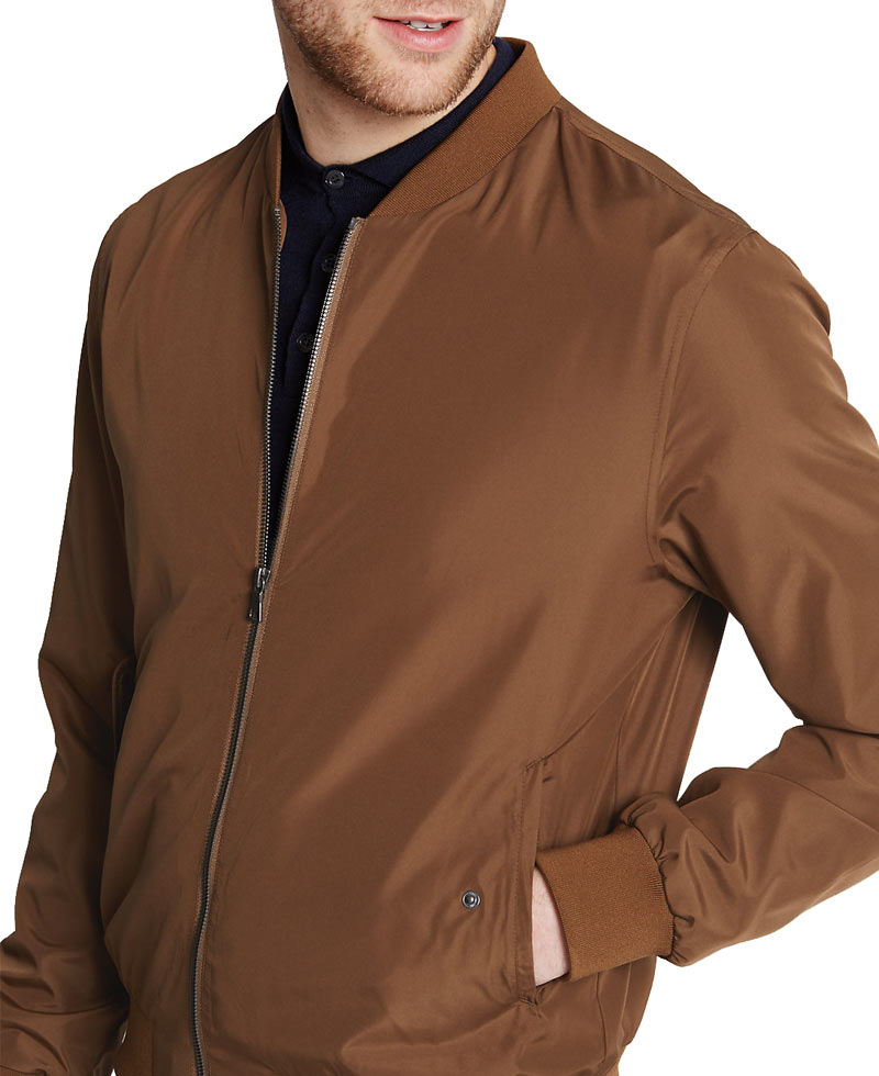 To look sporty and active is the new aesthetics people seem to be following. They have ditched the regular leather jacket for softer and fashion forward bomber jacket. Brown baseball bomber jacket is perfect option for more sporty days. The casual bomber jacket is in satin fabric to give effortless look and camel brown colour adds a sophisticated touch the outfit. Baseball bomber jacket has front zipper closure along with flapped pockets on either side of the jacket to make the wearer stand out in the crowd. The high points of the casual bomber jackets are the rib knit detailing on the collar, on the cuffs of full length sleeves and the on the hemline of the jacket to showcase the excellent quality of stitching. Baseball bomber jacket is internally lined with viscose fabric for added softness to the look.