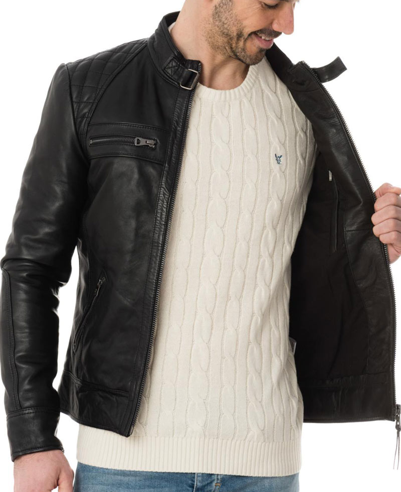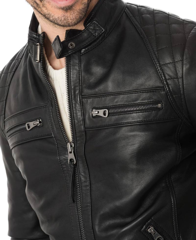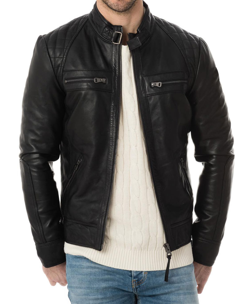 For men main motto of buying clothing article is to accentuate the elegance of one’s nature which is perfect portrayal of the person’s personality. The best option for this is diamond quilted jacket. The lavish black colored diamond quilted jacket is available in both genuine leather and faux leather to suit the requirements of the wearer. Casual black leather jacket has front zipper closure and buckle belted stand up collar that brings in the lushness to the jacket and enhance the wearer’s persona. Diamond quilted jacket has zipper pockets on both side of chest, on both side of waist and one internal pocket is present. The high point of the diamond quilted jacket is the asymmetrical quilted shoulder design which covers the back of the neck and open hem cuffs present on full length sleeves. Casual black leather jacket is internally lined with viscose fabric.