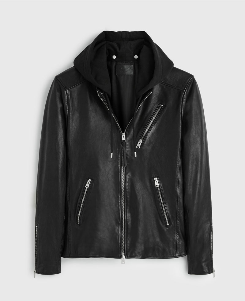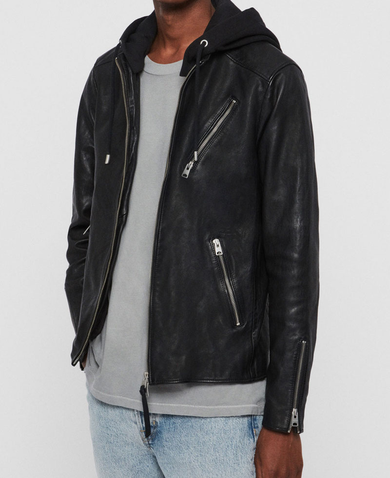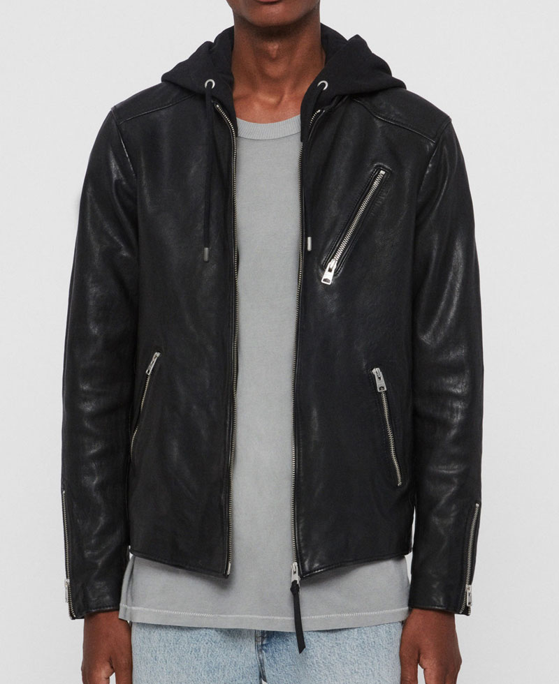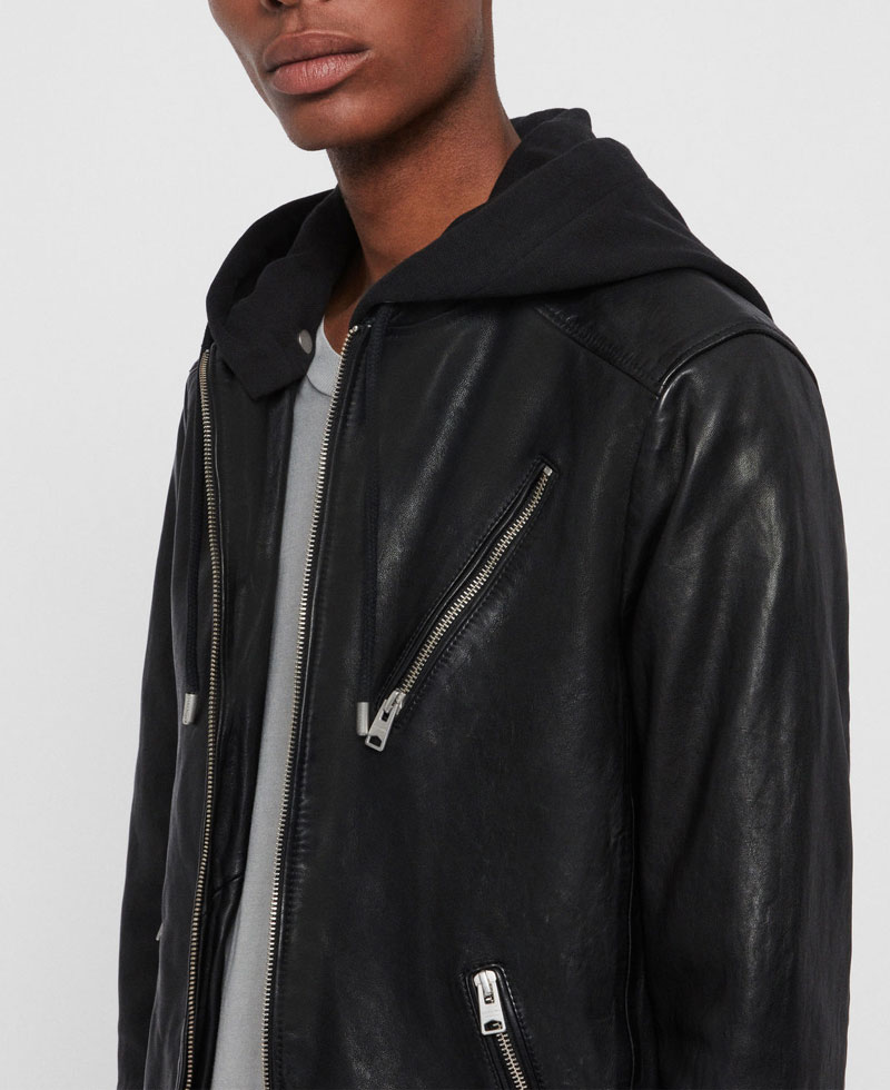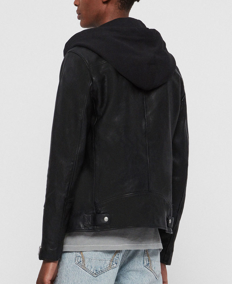 Men’s Harwood Black Leather Biker Jacket with Hood