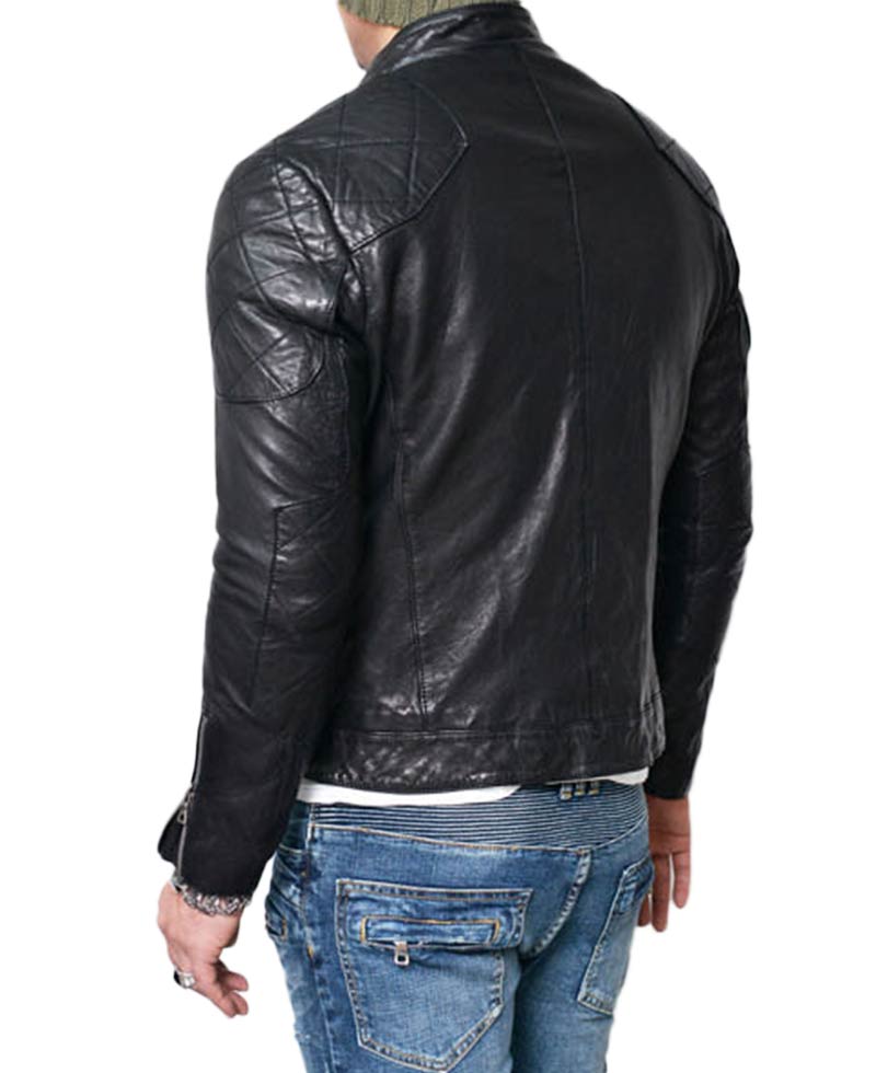 Men’s Quilted Shoulder Lambskin Black Leather Biker Jacket