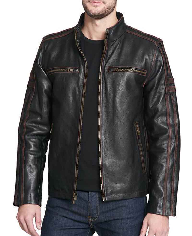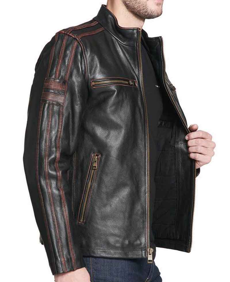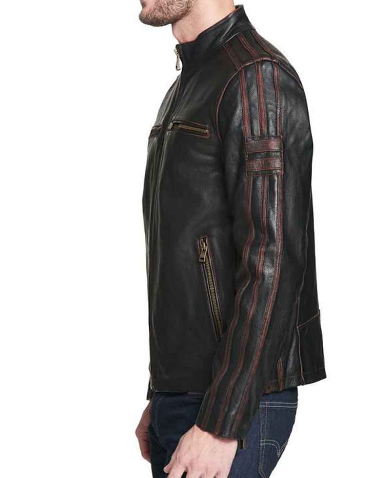 Men’s Antique Brown Striped Design Cycle Black Rivet Leather Jacket