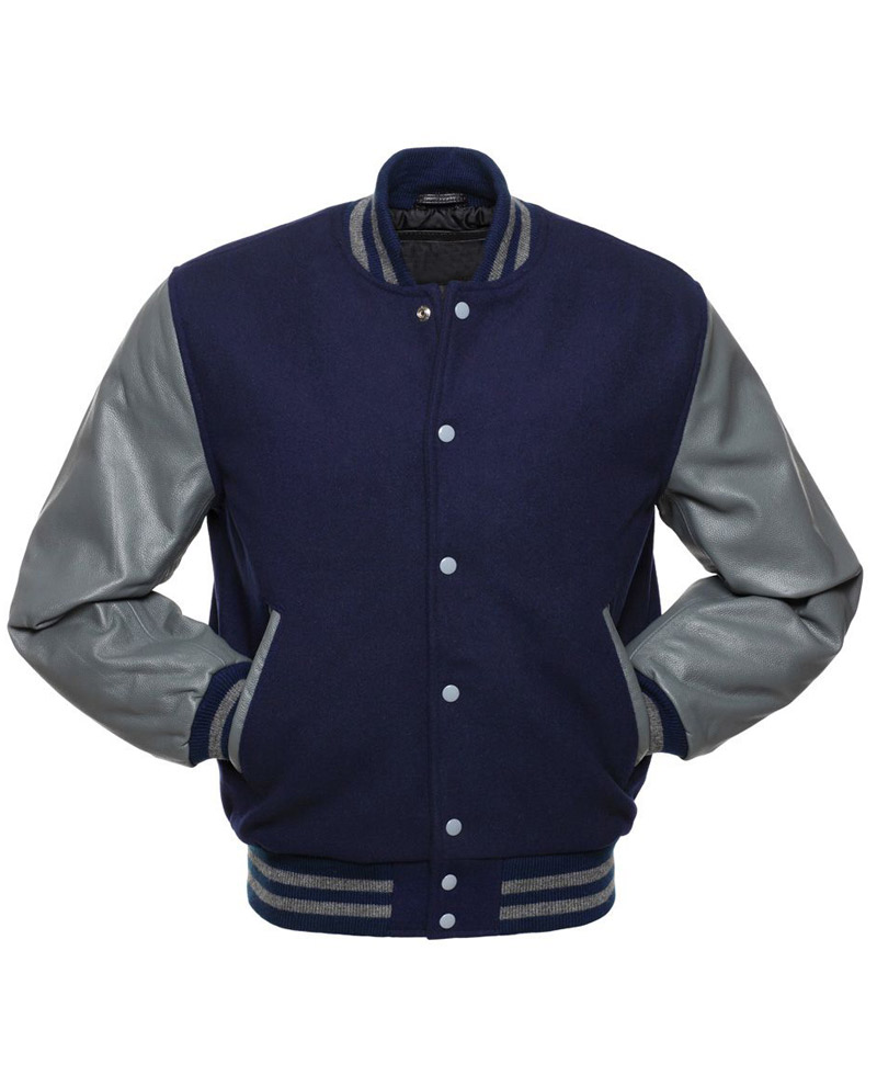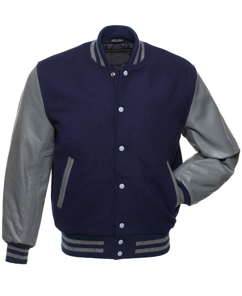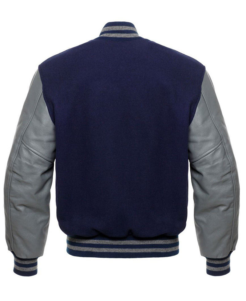 Men’s Varsity Bomber Blue Wool and Gray Leather Jacket