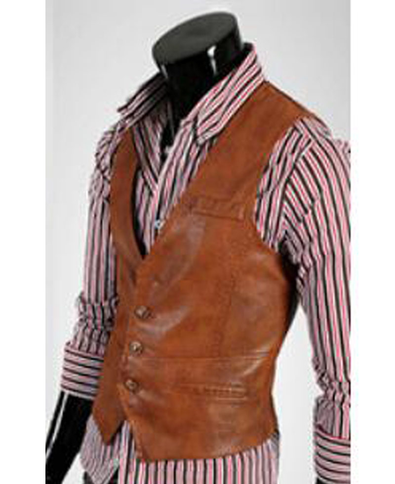 This apparel is specially crafted as a Slim Fit Vest for men while it creates the most super standing persona among the rest of the people of the town to give you intriguing fashionable guise. It covers best of the features which will take to the next level of smartness attiring such mirror looking good outfit which is sophisticatedly produced from either genuine leather material of faux leather material with the comforting internal viscose lining. This causal interpretation also comprised of a chest pocket alongside two waist pockets. With the entire appearance of the Slim Fit Leather Vest is also affirms with the front designed buttoned closure. It embarks the optional shade to embrace your favorite color which would be one of the black or brown as per your choice.