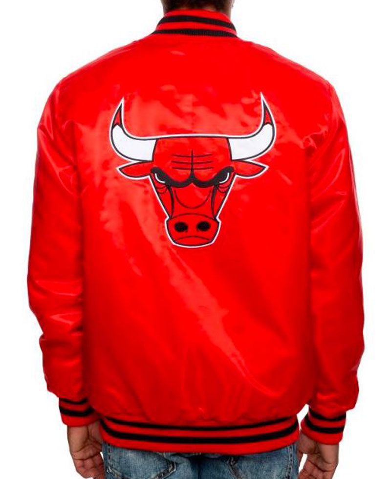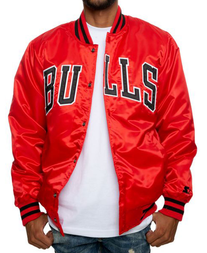 The stylish Bulls starter jacket comes in a vibrant and attractive red color. The external side of this bomber jacket is fabricated with high-quality satin fabric. The fine quality stitching makes the apparel long-lasting. The is an internal lining of smooth and soft viscose attached to this jacket that will keep you comfortable and will guard you against cold weather. Bulls starter jacket has buttons attached to its front side for the closure. The jacket has an rib-knitted collar. It comes with two front waist pockets where you can secure stuff. Chicago Bulls jacket has rib knitted style cuffs on full length style sleeves. The jacket has a rib knitted hemline as well which gives it a fitted look.