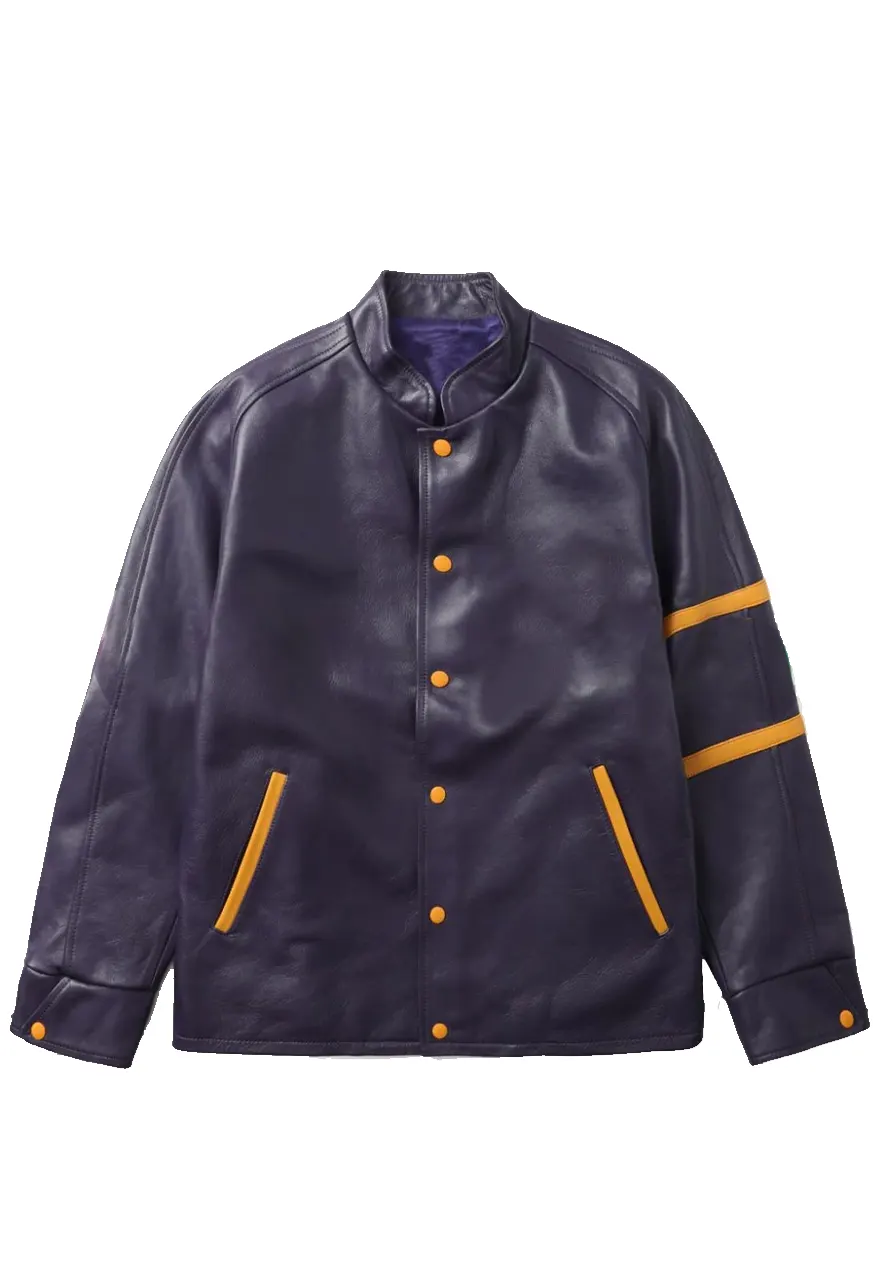 Men’s Dark Purple Leather Jacket with Orange Stripes