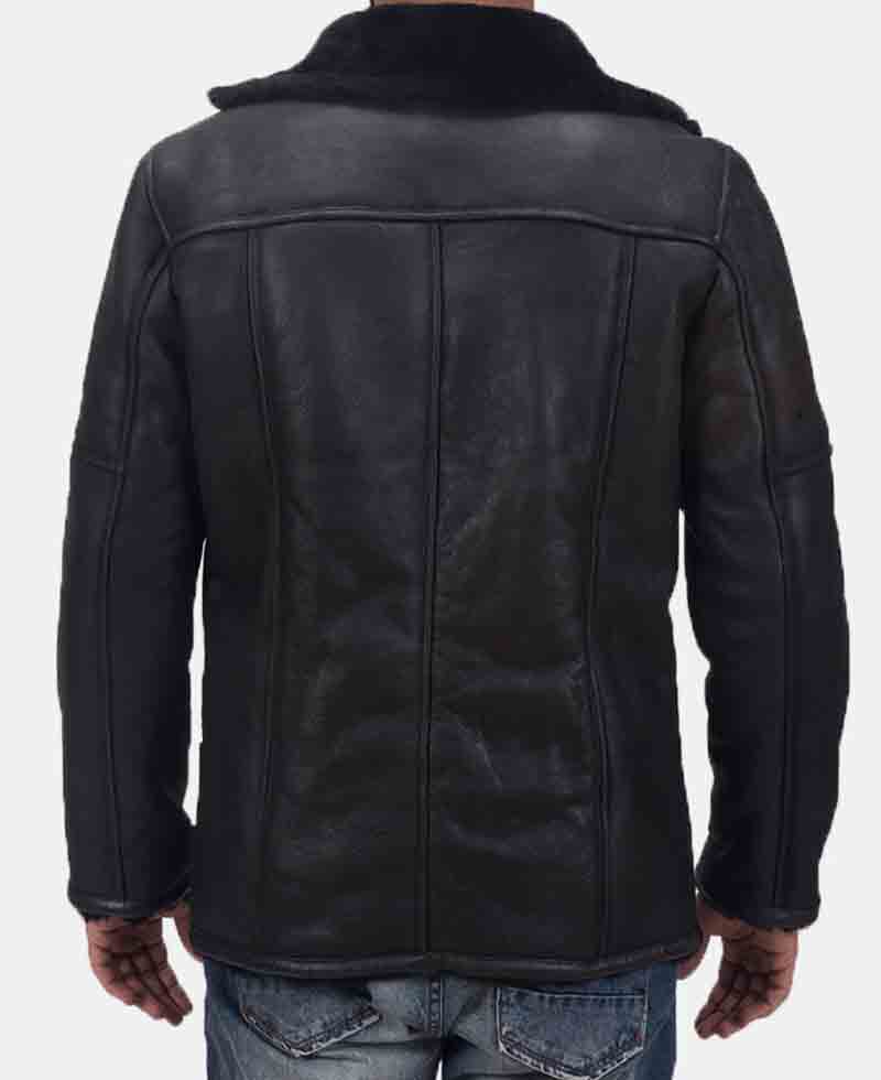 Men’s Designer Double Face Furcliff Black Leather Shearling Jacket