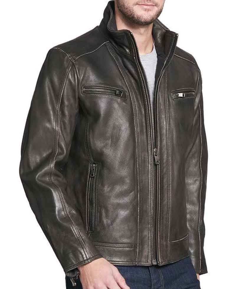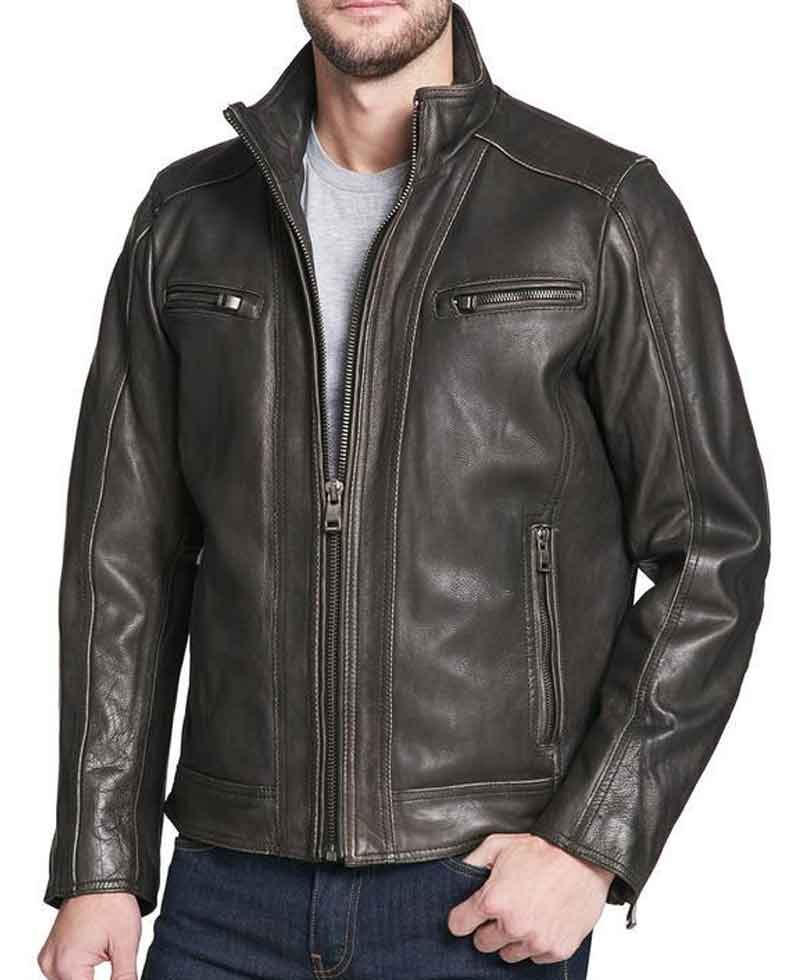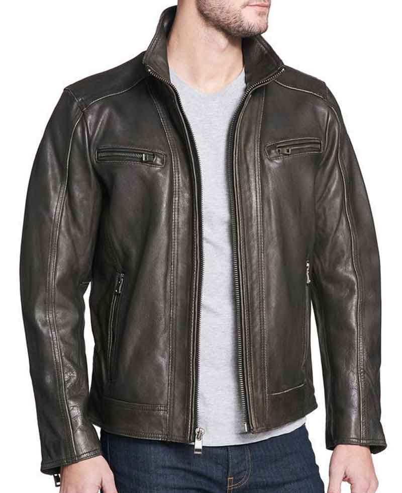 vintage Black leather jacket is fabricated from special and enduring quality material. The stuff used in the manufacturing of this jacket is high-quality genuine leather. This jacket will certainly guard you against cold climate and will make you feel warm and cosy. The inner soft viscose lining of this jacket is the cause why this jacket is so comfortable to wear.  vintage Black leather jacket has a stand up style collar. There are horizontal pockets at chest with zipper side pockets in which you can secure your things. This leather jacket has front ykk branded zipper closure style that looks perfect with the style and design of this jacket. This jacket has full length sleeves with zipper style cuffs. There are two interior pockets as well on this garb. This jacket is available here in Black color. You will love and no doubt love the detailing done on this jacket. Order now and grab your pieces.
