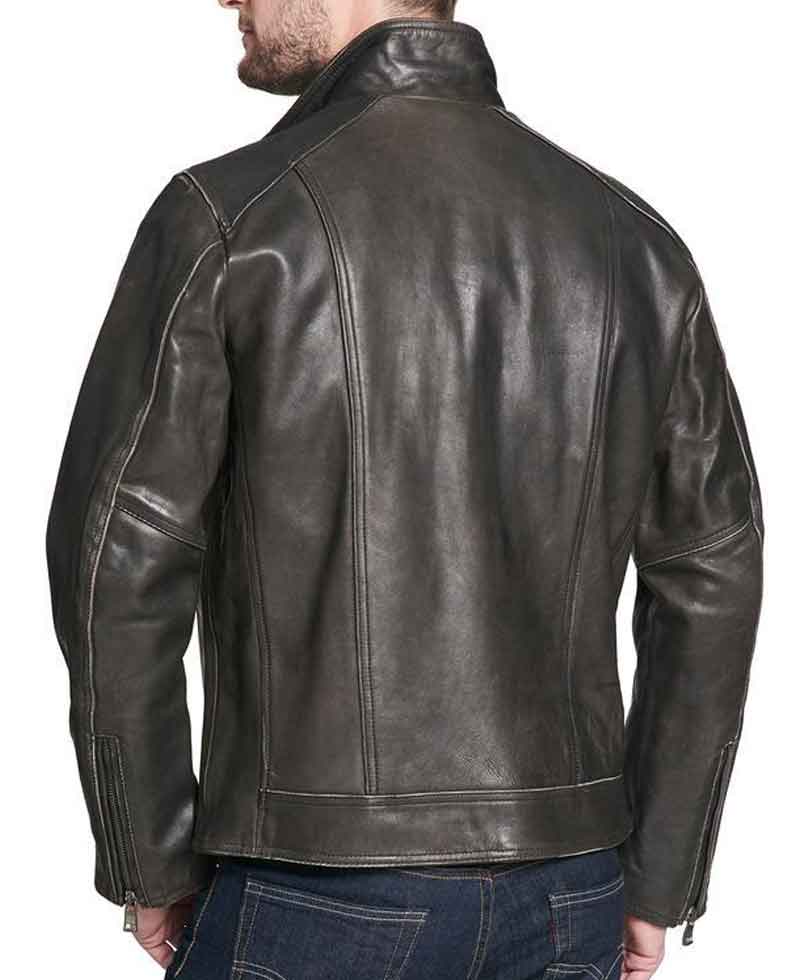 Men's Faded-Seam Cycle Vintage Leather Black  Jacket