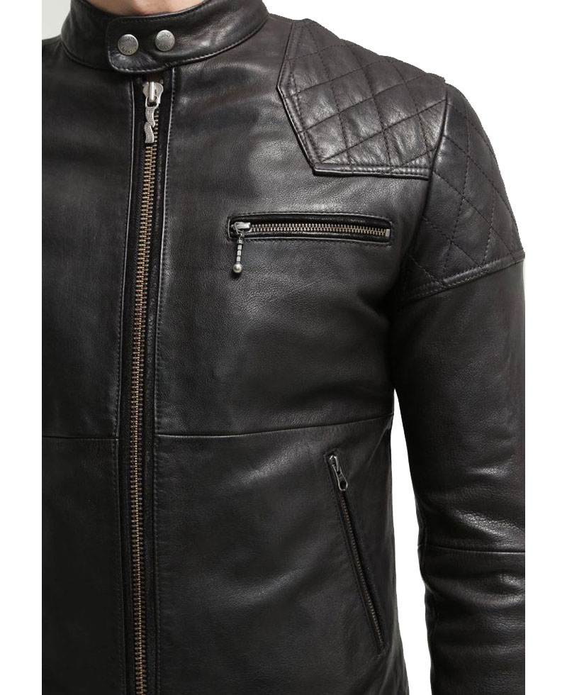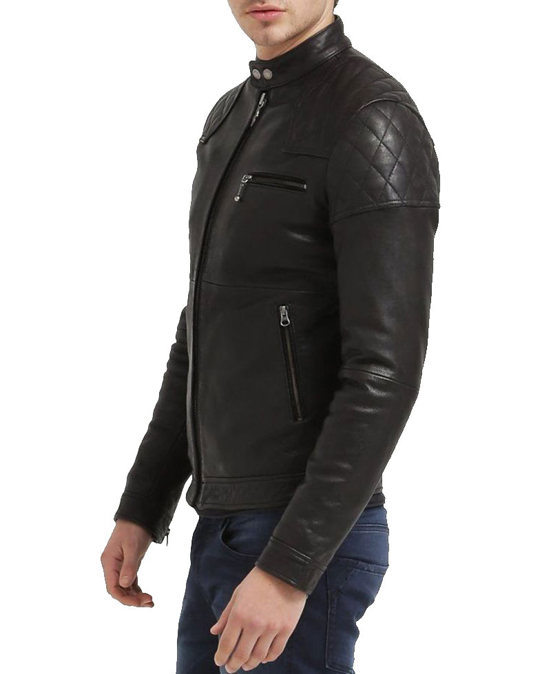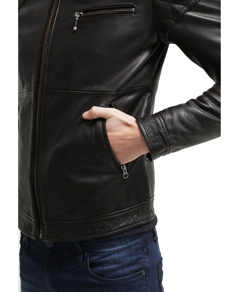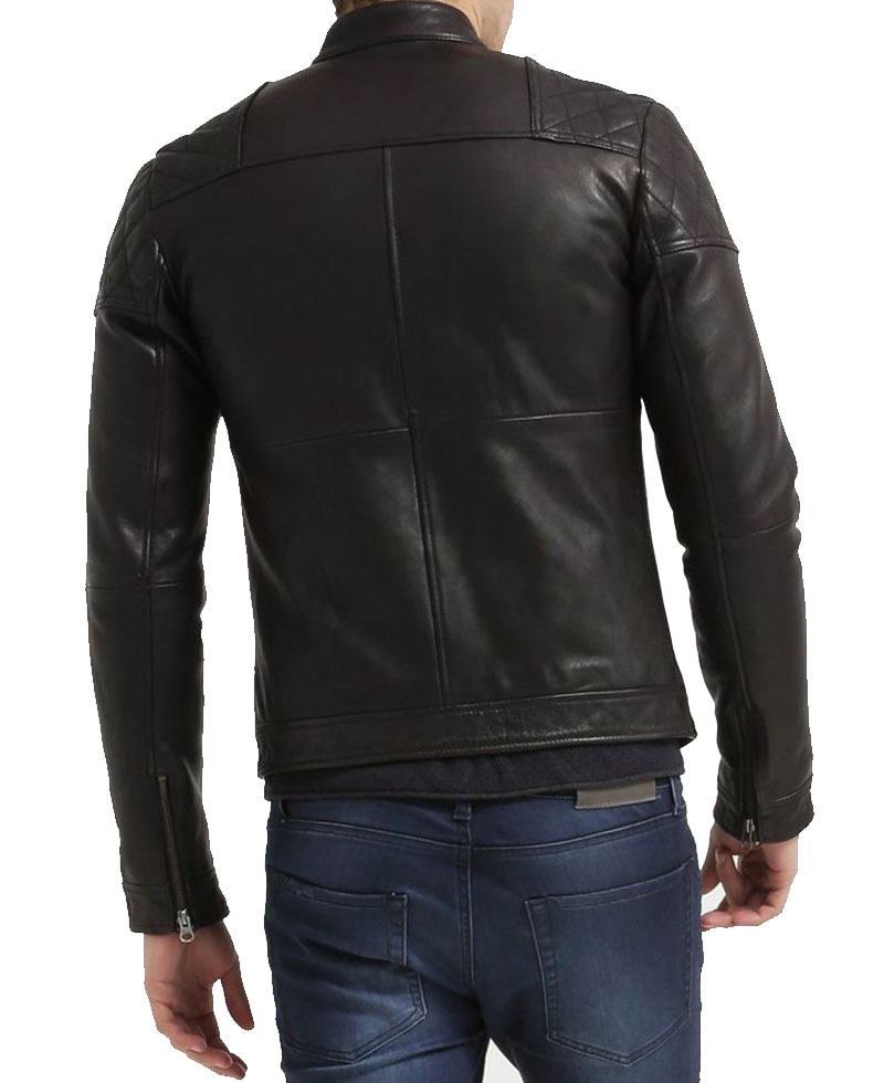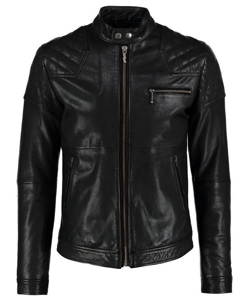 The men’s black leather biker jacket is manufactured with high and premium quality of genuine leather material. On the inner side of this jacket, there is a lining of soft and comfortable viscose that will keep you warm and relaxing. The apparel comes in a black rich and appealing color. Men’s zipper pockets leather jacket has front ykk branded zipper for the closure that fits in perfectly with the look of this leather biker black jacket. The mens black leather biker jacket looks more stylish with zipped cuffs on full length style sleeves. The jacket comes with a snap tab style collar. The mens biker leather jacket has two zipper side waist pockets and zipper chest pockets on the frontal. Also the padded shoulder and sleeves of this jacket makes it more engaging to wear.