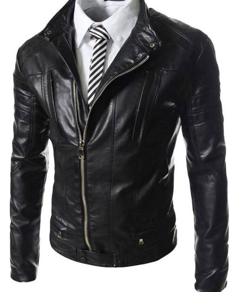 Men’s asymmetrical black leather biker jacket is perfect apparel for parties or hangouts with friends and family. The apparel will give you a stylish look. The external side of this jacket has been manufactured by using rich and premium quality of genuine leather material. On the internal side of this jacket is a lining of smooth and soft viscose attached that keeps you warm and comfortable all the time. The leather stylish acjekt comes in rich black color. Men’s asymmetrical black leather biker jacket has a snap tab style collar. The detailing on the front, sleeves, and shoulders of this leather jacket makes it more attractive. The leather jacket has two front chest pockets along with two side waist pockets. It has zipper style cuffs on full length style sleeves. There is a ykk branded zipper attached to the front side of this leather jacket for the closure.