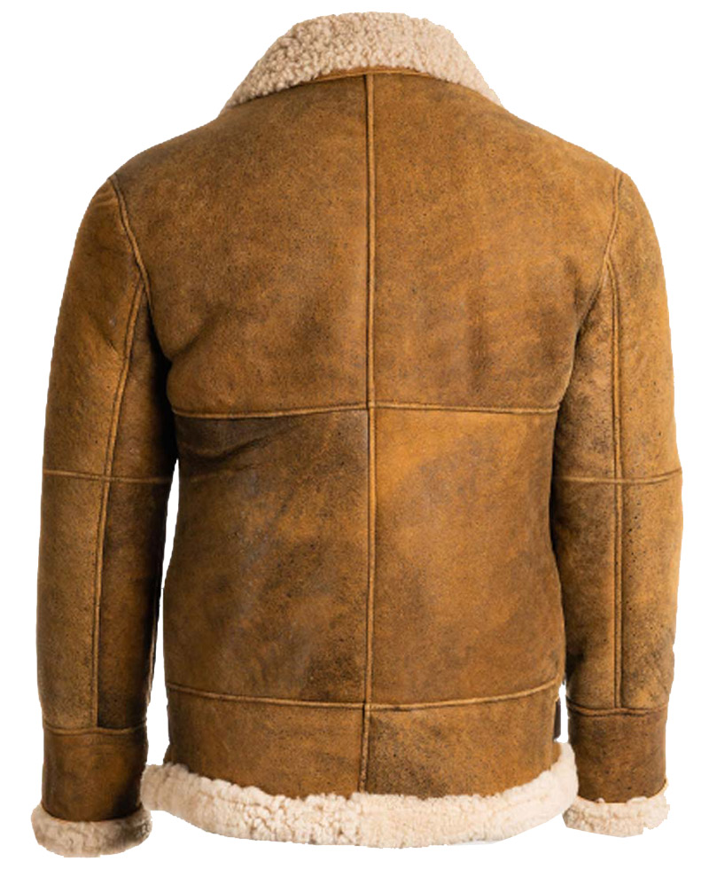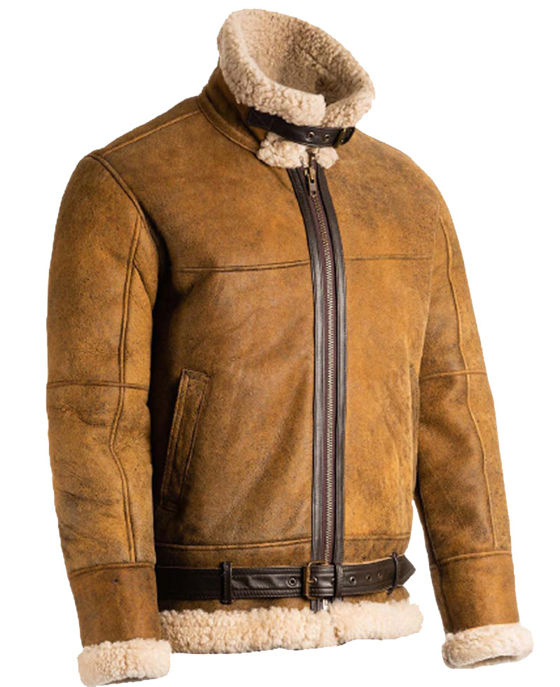 The b3 shearling jacket is manufactured with premium quality genuine leather material. The internal side of this jacket is stitched with soft faux shearling lining that guards you against cold weather and keeps you comfortable. The mesmerizing brown color makes the appearance of this b3 shearling jacket more desirable. The jacket has a ykk branded zipper attached to its front side for closure. The shearling-lined shirt style collar also makes the appearance of this garb attractive. B3 shearling jacket has two front waist pockets where you can secure stuff. The shearling-lined hemline along with shearling-lined open hem style cuffs looks attractive. The jacket has long length style fitted sleeves. Also, it has a belt for fastening.