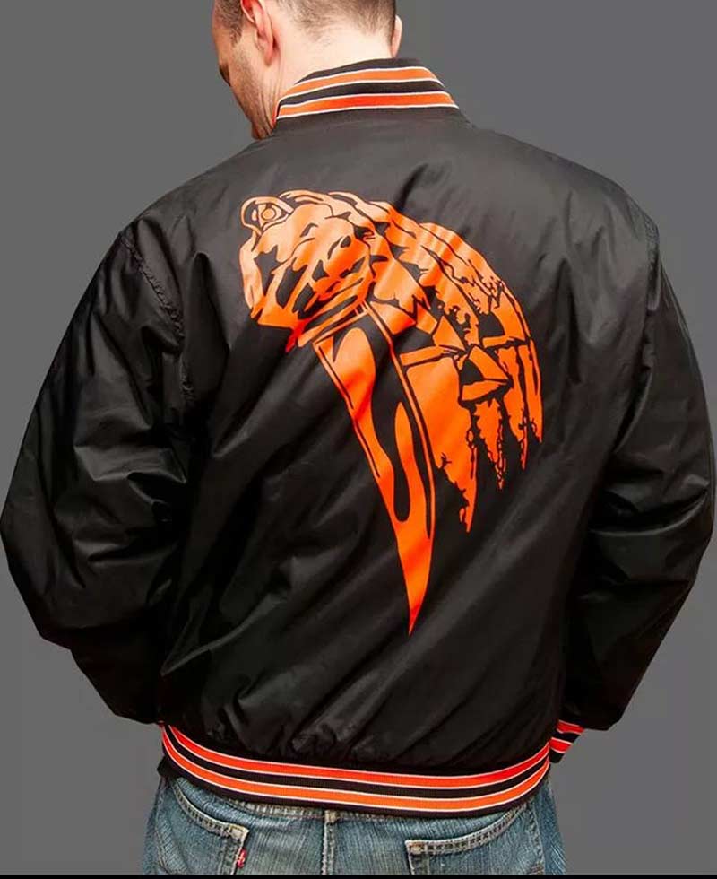 Halloween 78 jacket is made from nylon material. It is the perfect Halloween material and it will give you a desirable look. With its simplicity, it had made its path in our hearts. People are attracted to this garb because of its simple and detailed features. The Halloween nylon jacket has front buttoned closing. The rib-knitted cuffs in orange and black color look very impressive on full-length sleeves. The rib-knitted collar brightens the looks of this jacket. It has a rib-knitted hemline as well. The front waist pockets allow you to secure stuff in them for later use. It has two logos, one is on the front with a “78” number printed and one is on the back of this jacket that is giving it an attractive appearance.