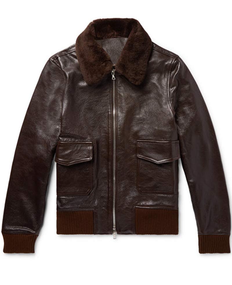 Men’s John Grain Brown Leather Bomber Jacket with Shearling Trimmed