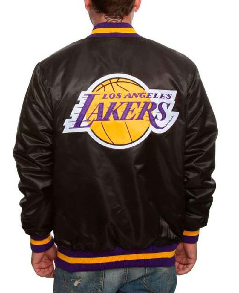 Men’s Los Angeles Lakers Satin Black Bomber Jacket